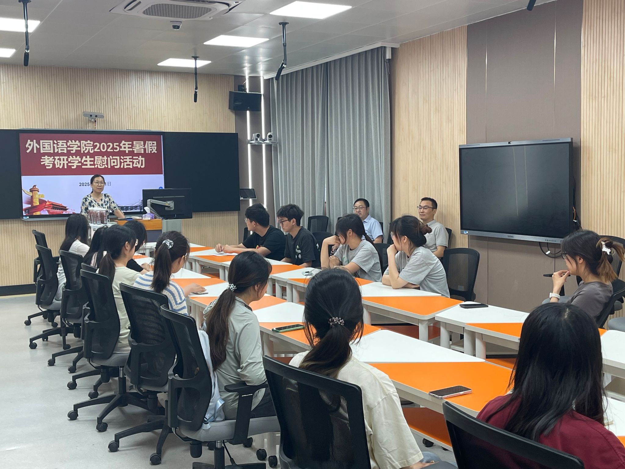 为传递公司对员工的关怀,助力考研学子逐梦前行, 7月11日下午,云顶国际yd333于品学楼一楼智慧教室开展暑假考研慰问活动。公司党委书记李炜,经理胡庭树,党委副书记、副经理祖维,经理助理闫静,辅导员夏雁军参加本次活动。