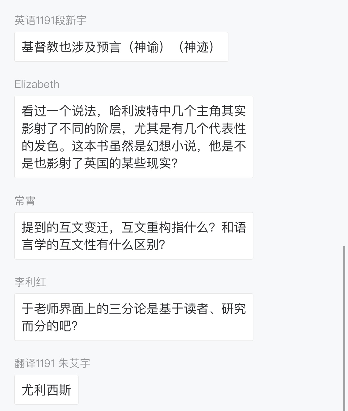 第二,线上讲座互动热烈,讨论充分。此前线下讲座时,碍于面对面的情形,很多听众不好意思当众发言,使得互动不够积极,讨论不够充分。而在线上讲座的优势下,提问者只需在聊天框发送想问的问题,并由主持人代读,便能实时参与互动讨论,有效地提升了讨论的积极度。于敏博士也凭借良好的学术素养给予了细致精彩的解答,讲座讨论在一片其乐融融之中有序开展。