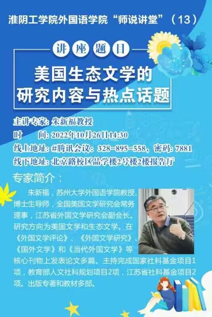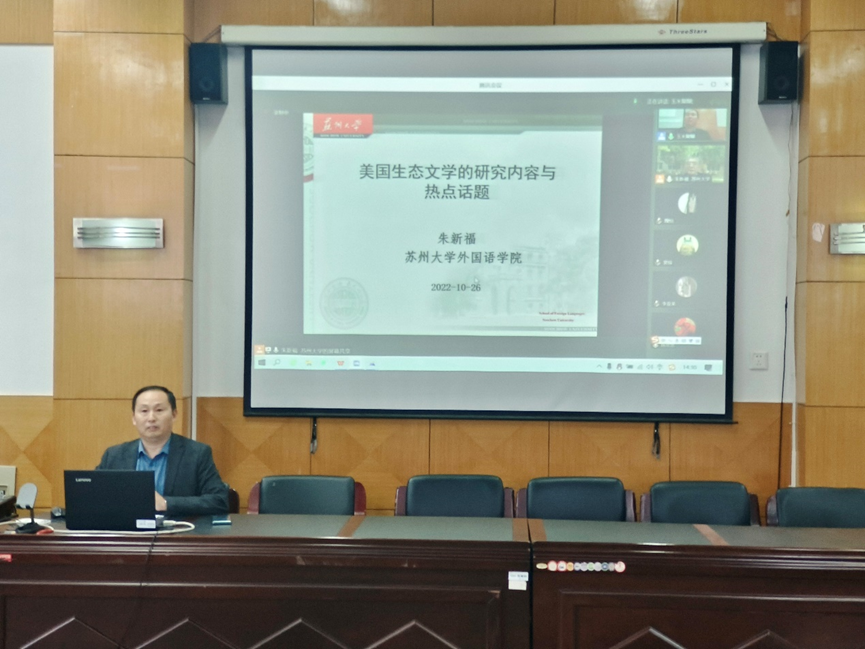 10月26日下午,云顶国际yd333于品学楼2210开展以《美国文学的研究内容和热点话题》为主题的“师说讲堂”第十三期暨公司文科科研能力提升系列活动第三期。本次活动由苏州大学云顶国际yd333朱新福教授担任主讲嘉宾,云顶国际yd333经理孙建光主持。讲座采用线上和线下相结合的方式进行,云顶国际yd333全体教师及其他文科院系教师参加讲座。