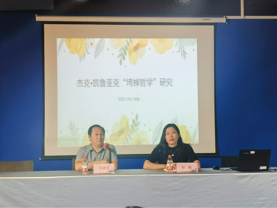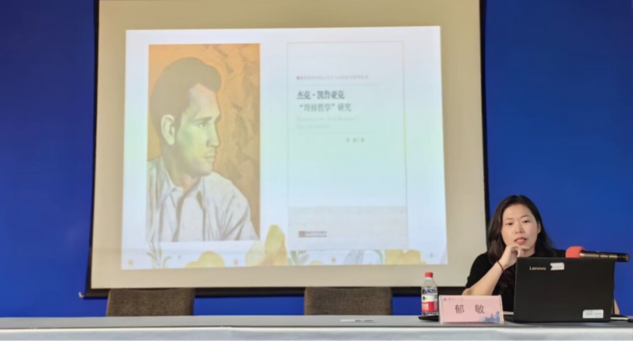 郁敏以《杰克·凯鲁亚克“垮掉哲学”研究》为报告主题,介绍了该研究的缘起,重点从四个角度对以凯鲁亚克为代表的文化群体所体现的“垮掉哲学”进行了深度挖掘与解析,系统总结了其作品中丰富的精神内涵,并通过细致的文本细读,运用鲜活生动的事例、风趣幽默的语言客观展现了凯鲁亚克及其“垮掉一代”朋辈内心的复杂情感。