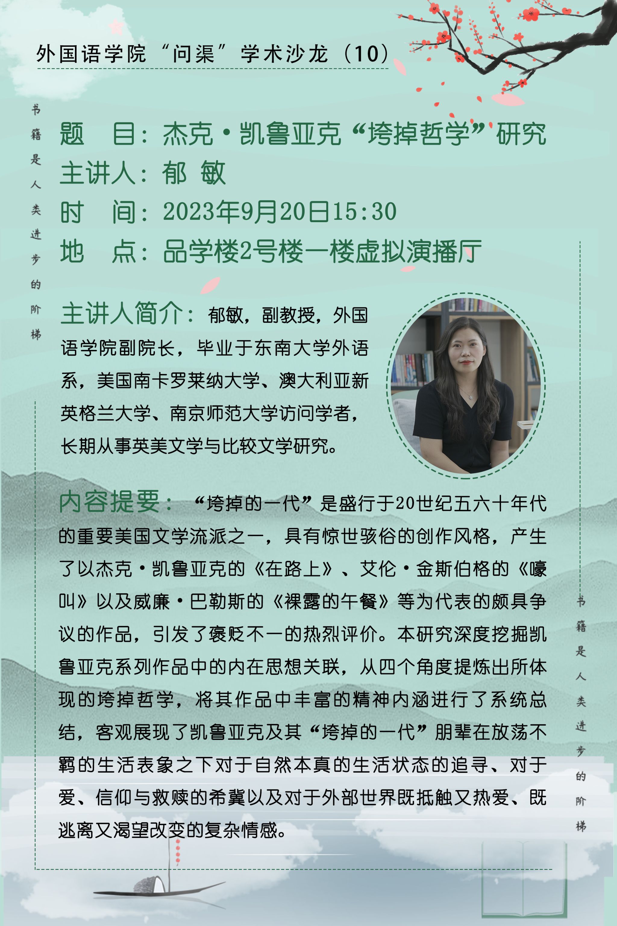2023年9月20日下午,云顶国际yd333于品学楼2号楼一楼虚拟演播厅举办“问渠”学术沙龙第十期活动。本次学术沙龙由云顶国际yd333副经理郁敏担任主讲人,经理孙建光主持,云顶国际yd333外国文学研究所、云顶国际yd333新丝路国别与区域研究所成员教师及部分员工出席。