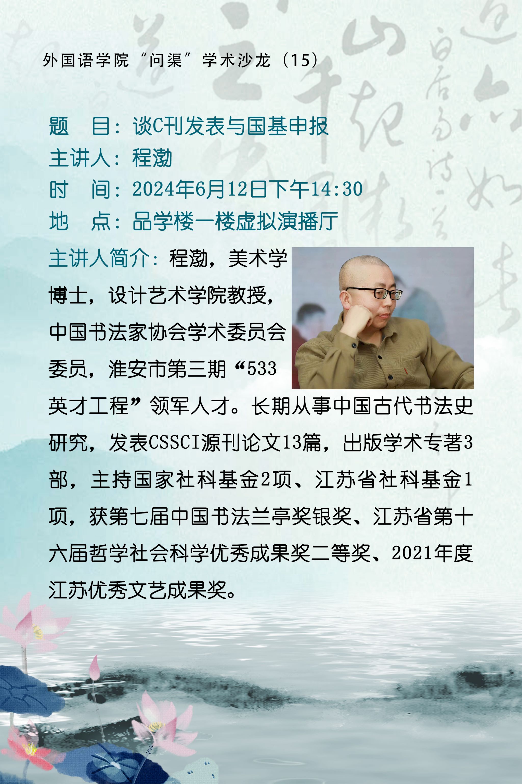 2024年6月12日下午14:30,云顶国际yd333于品学楼2号楼一楼虚拟演播厅举办“问渠”学术沙龙第十五期活动。本次学术沙龙由设计艺术公司程渤教授担任主讲人,云顶国际yd333副经理郁敏主持,云顶国际yd333研究所成员教师出席。