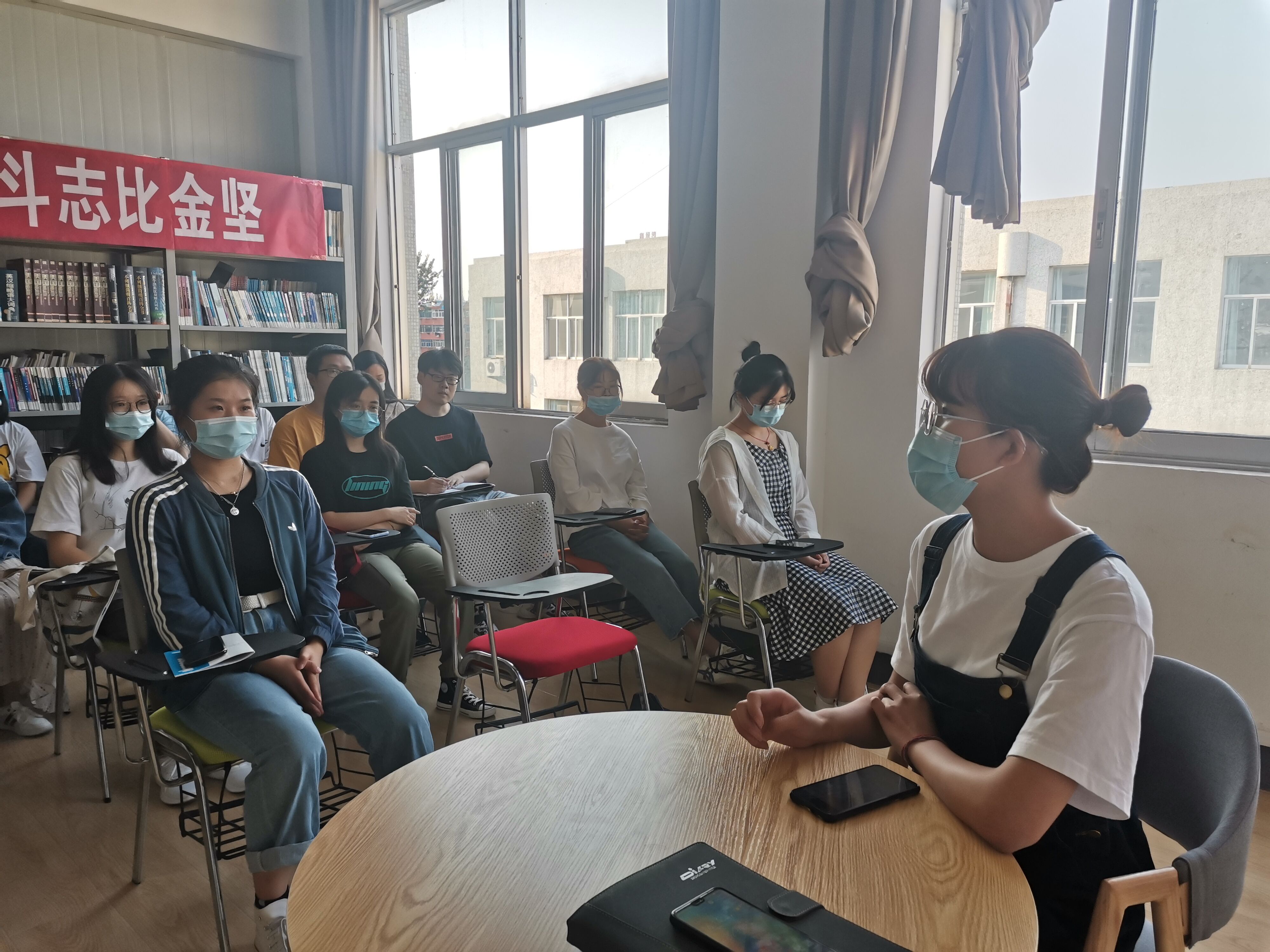 然后,党小组组长陈乐敏发言。她指出党小组的成立目的是组织同学们学习打卡,带动大家共同进步、成功上岸。通过结合自身备考,她指出备考过程中同学们普遍存在的焦虑性问题,并鼓励他们克服焦虑,及时调整心态,客观看待自己。此外,她也强调劳逸结合的重要性。备考一定要做到:努力到底!坚持到底!