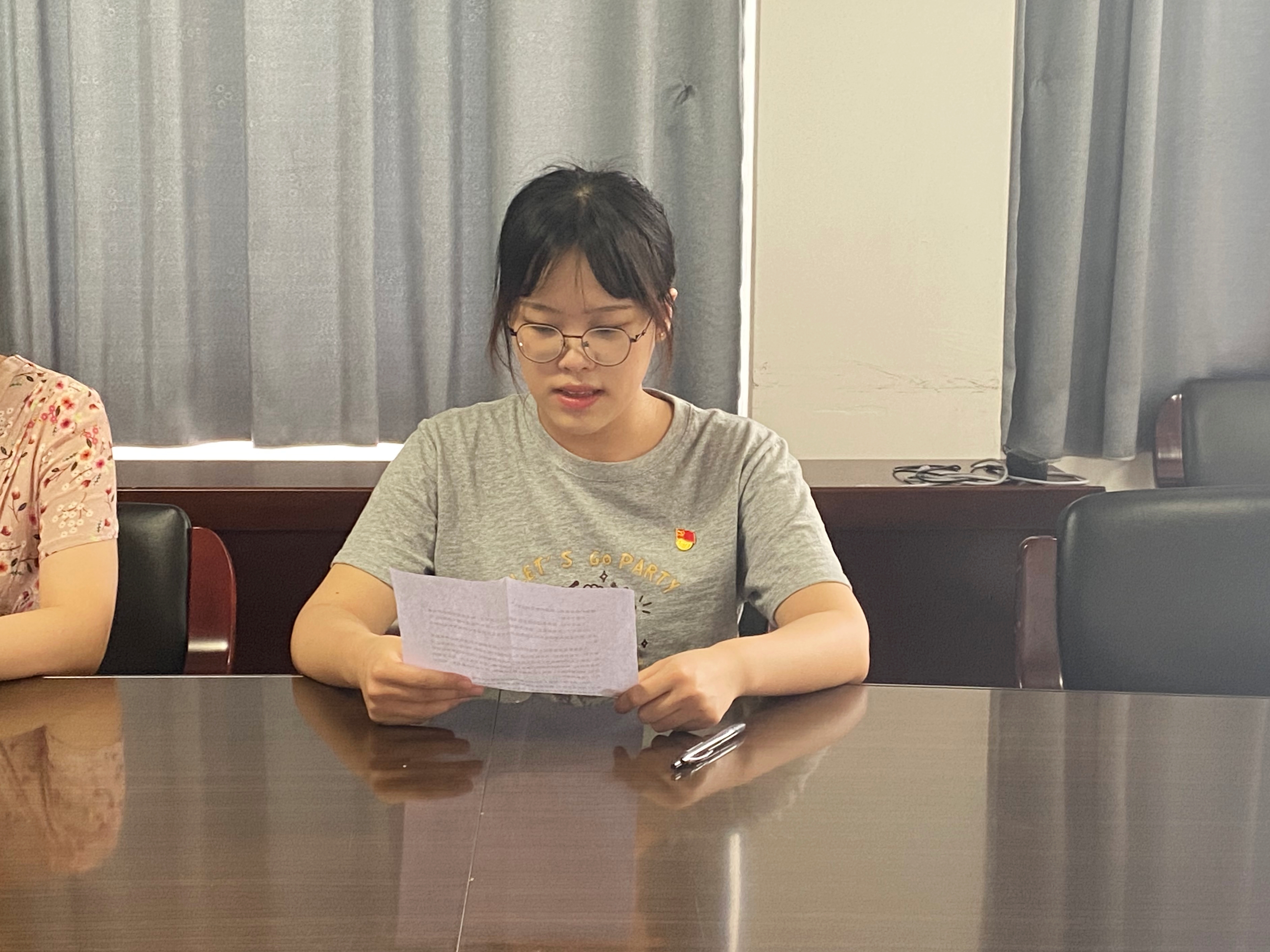 仪式上,新党员代表袁越同学发言。她以入党宣誓是新党员加入党组织的必经程序为主题,强调了每一位新入党的同志都应努力去实现今天的誓言,应当认识到中国共产党员不仅是一种身份,更是一种责任。然后,袁越同学鼓励新党员们要向先进的老党员同志学习,做好模范带头作用,领时代风气之先,展党员之风采。