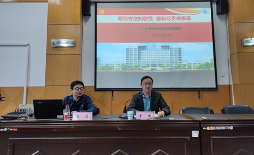 10月13日下午2:30,2021年全公司党纪法规宣讲团走进云顶国际yd333,校纪委办主任石磊围绕《明纪守法知敬畏,履职尽责做表率》主题开展宣讲。公司领导班子全体成员、全体教职工参加了宣讲活动。活动由公司党委书记李炜主持。