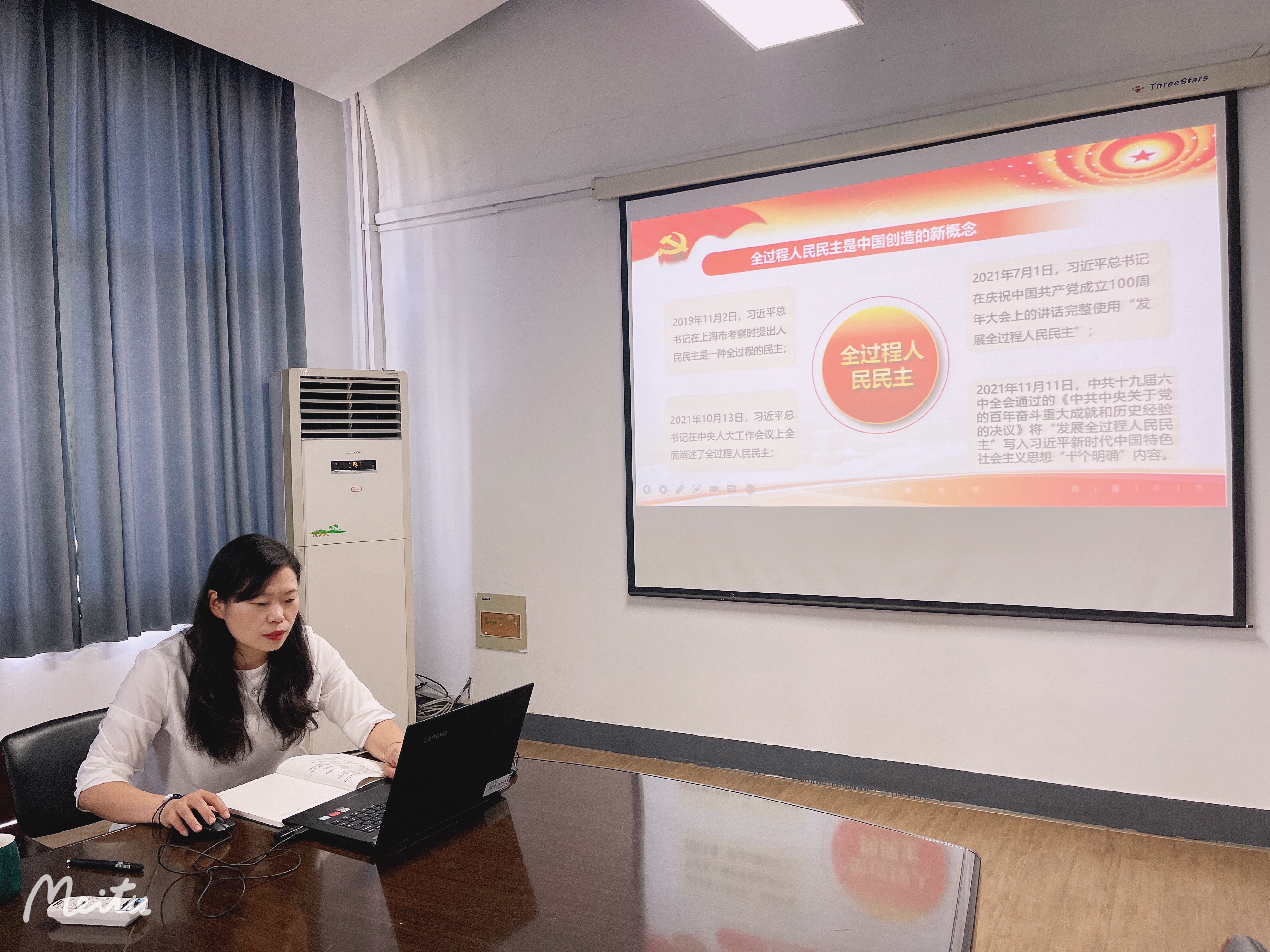 郁经理以“深刻认识习近平总书记关于‘全过程人民民主’的重要论述”为题,从全过程人民民主提出的战略背景、全过程人民民主的深刻内涵、全过程人民民主的重大意义三个方面进行阐述,指出全过程人民民主,使人民当家作主更好体现在国家政治生活和社会生活之中,中国特色社会主义政治制度优越性得到更好发挥,生动活泼、安定团结的政治局面得到巩固发展,激发和凝聚了中国人民奋斗新时代的磅礴力量。