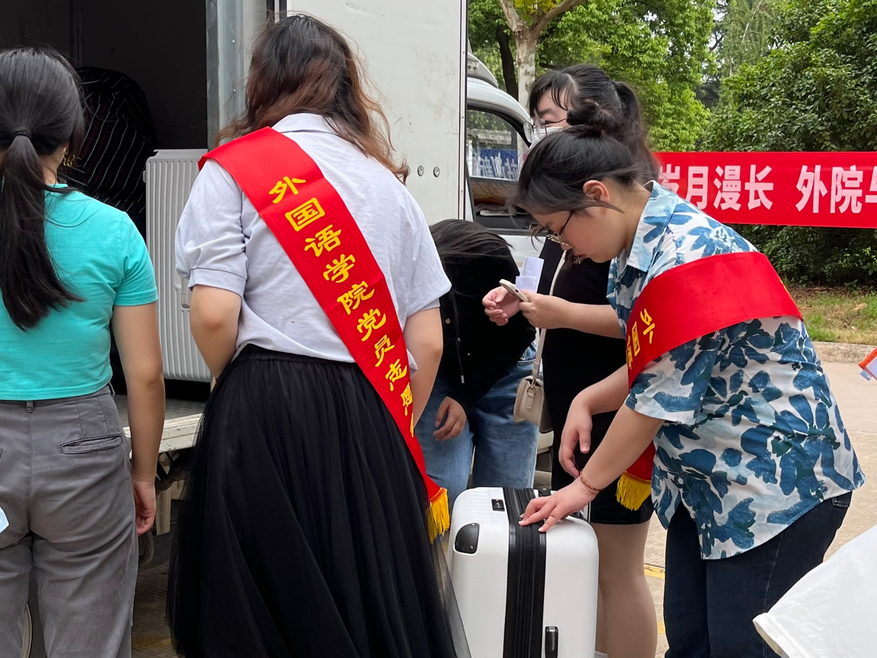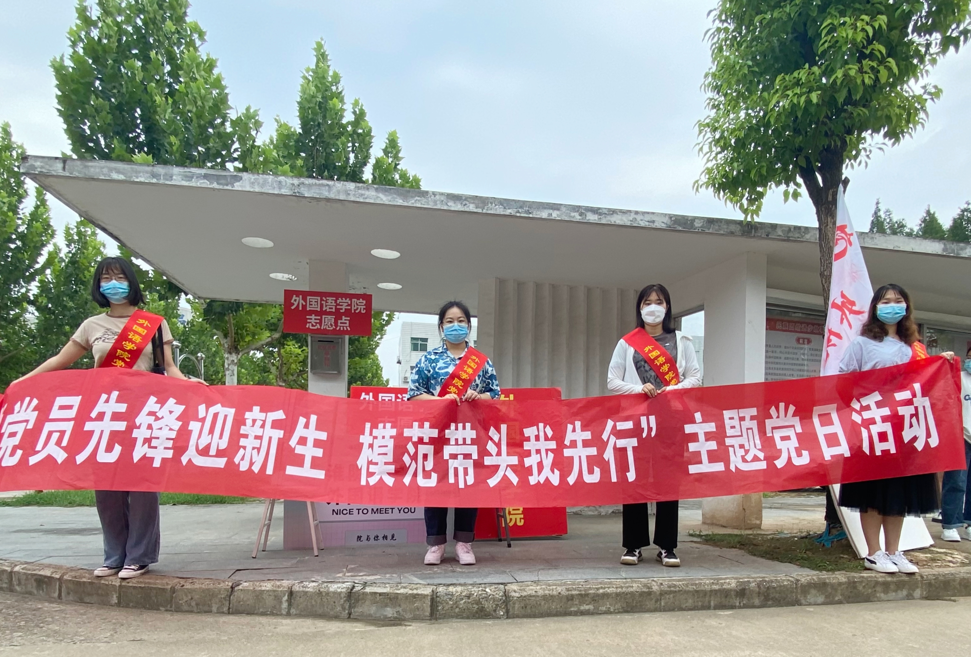 在迎新工作中,公司员工党员统一佩戴党员志愿者绶带,亮出党员身份,展示党员风采,勇担党员责任,积极树立党员形象,展示党员的模范带头作用。员工党员想新生所想,急新生所急,以不怕苦,不怕累的精神时刻站在迎新第一线,以热情的微笑,耐心的言语,贴心的服务帮助外院小萌新们顺利完成入学报到工作。