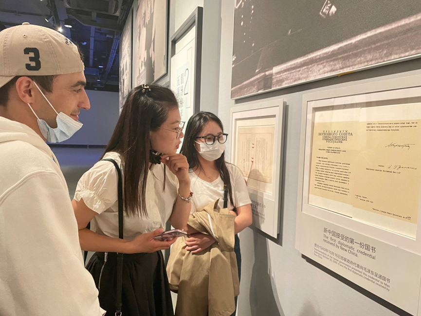支部书记闫静博士充分发挥自己的俄语专业特长,用俄语向几位母语是俄语的职工介绍馆内展品的来龙去脉,支部党员何霞博士用英语向职工讲解周恩来总理革命历程的各个片段。在参观过程中,职工面对馆内一幅幅图片、一件件实物、一段段历史记忆,尽管受到自身语言和文化背景的限制,但在支部党员的老师讲解下,对周恩来总理波澜壮阔的革命生涯、崇高的品德和光辉的人格也充满崇敬之情。 部分员工积极分子也用自己的所学,用外语讲述周恩来总理的故事,这也是专业学习的一次很好的实践,进一步提升了专业学习的兴趣,真正体会到“学好外国语言,讲好中国故事”的深刻内涵。