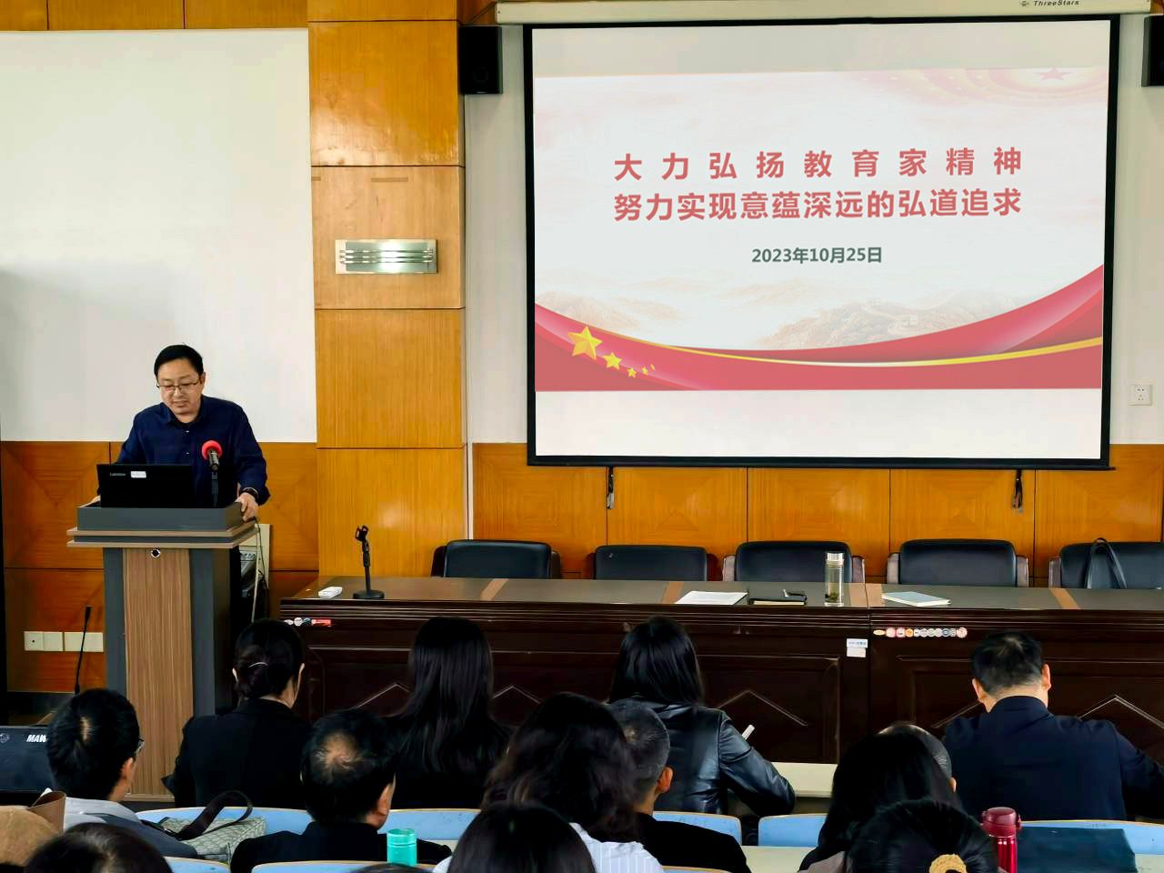李炜书记指出:习近平总书记号召全国广大教师以教育家为榜样,大力弘扬教育家精神,牢记为党育人、为国育才的初心使命。习近平总书记始终高度重视教师队伍建设,在不同时间、不同场合表达了对教师队伍的关心关怀和殷切期望。学习弘扬教育家精神,首先要讲政治,高站位、明大局,牢记为党育人、为国育才的初心使命,强化价值引领,提能聚力;二是要加强师德师风建设,培养高素质教师队伍,引导广大教师以赤诚之心、奉献之心、仁爱之心投身教育事业;三是充分发挥榜样的示范引领作用,发扬教师建设教育强国、科技强国、人才强国的主人翁精神。