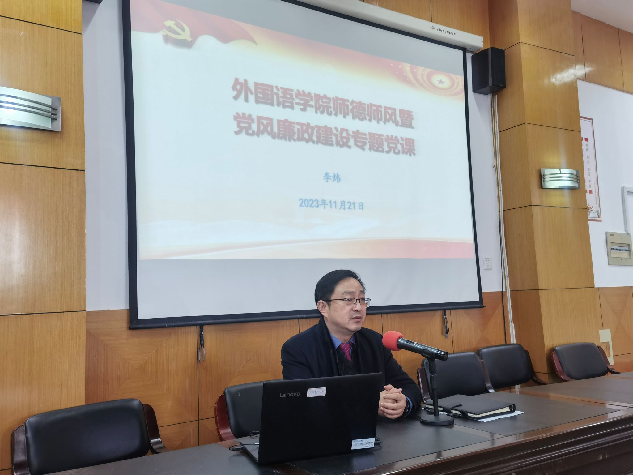 公司党委书记李炜以“严守廉洁底线,坚持立德树人”为题在全院上了党风廉政建设暨师德师风专题党课。李书记从高校教师职业操守与廉洁底线、高校教师立德树人的使命与责任、高校教师严守廉洁底线的风范、高校教师廉洁从教的自律与他律等方面展开,重温了《新时代高校教师职业行为十项准则》,并结合《高校干部职工违纪违法案例选编》,以案说法,教育引导全体教师要时刻坚定理想信念,牢记初心使命,严守纪律规矩,做到清正廉洁,勤勉尽责,共同营造崇廉尚洁、风清气正的校园文化氛围。