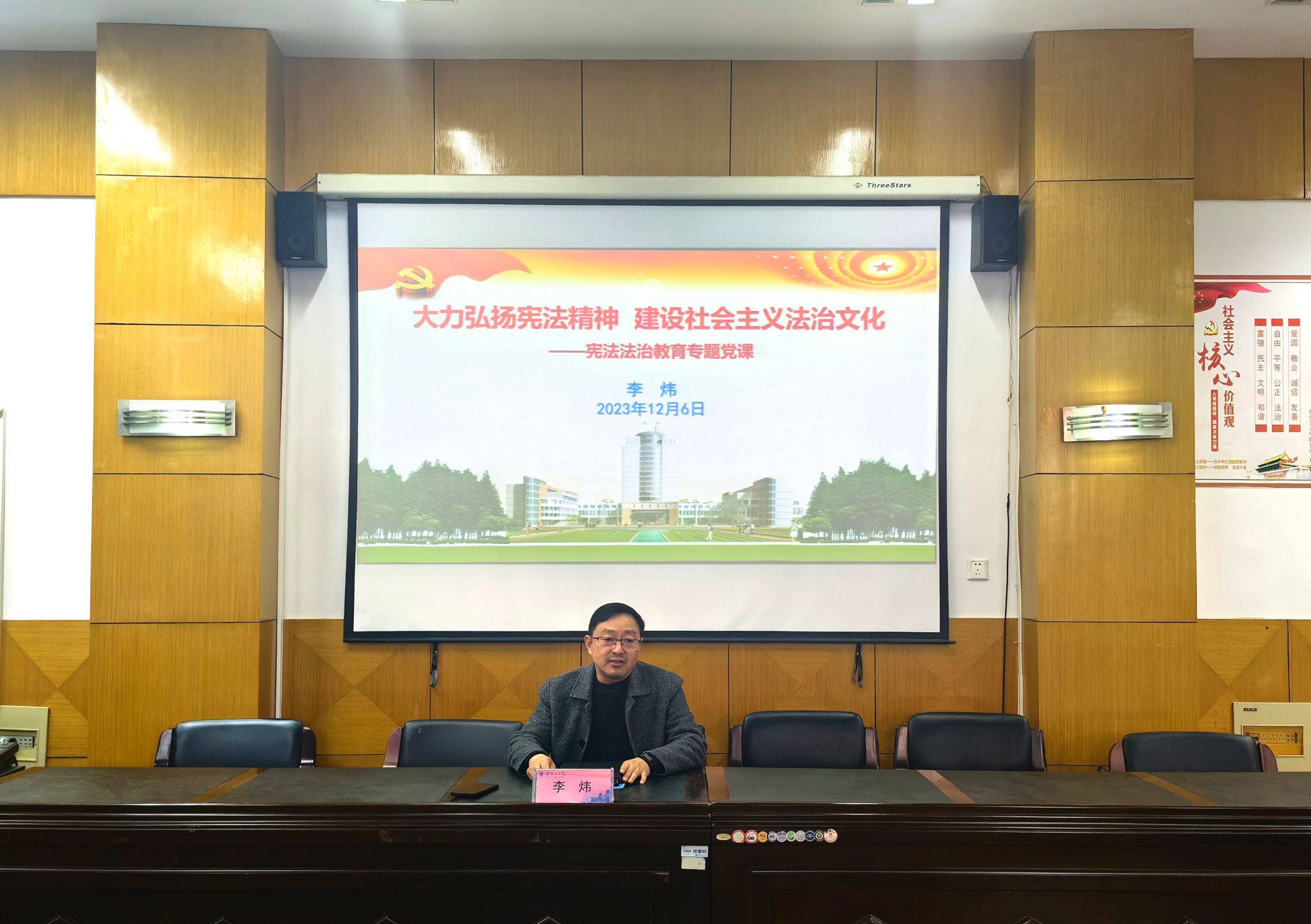 公司党委书记李炜以“大力弘扬宪法精神,建设社会主义法治文化”为题,从明确全面推进依法治国总目标、坚定不移走中国特色社会主义法治道路、加快建设中国特色社会主义法治体系、深化依法治国实践、加强党对全面依法治国的领导等五个方面展开,阐述了社会主义法治建设的目标任务,指出宪法是社会主义法律体系的核心,维护宪法尊严和权威是维护国家法制统一、尊严、权威的前提,也是维护广大人民群众根本利益、确保国家长治久安的重要保障。