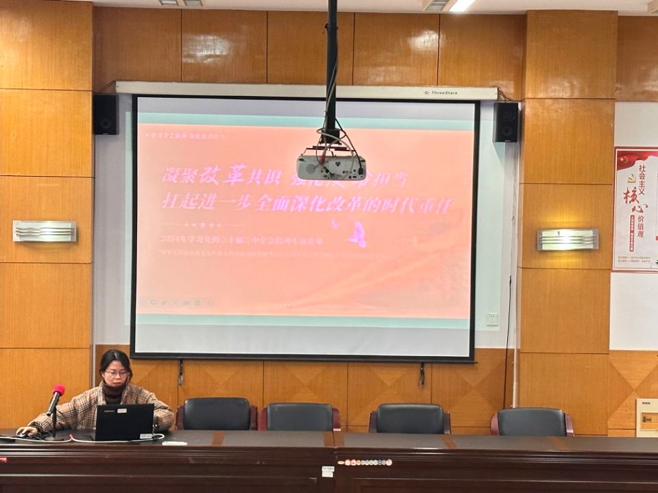 为深入学习贯彻党的二十届三中全会精神,12月24日晚6点,云顶国际yd333于品学楼2210开展以“党的二十届三中全会精神解读”为主题的专题党课。本次讲座由云顶国际yd333副经理李梓担任主讲人,云顶国际yd333各年级入党积极分子参与。