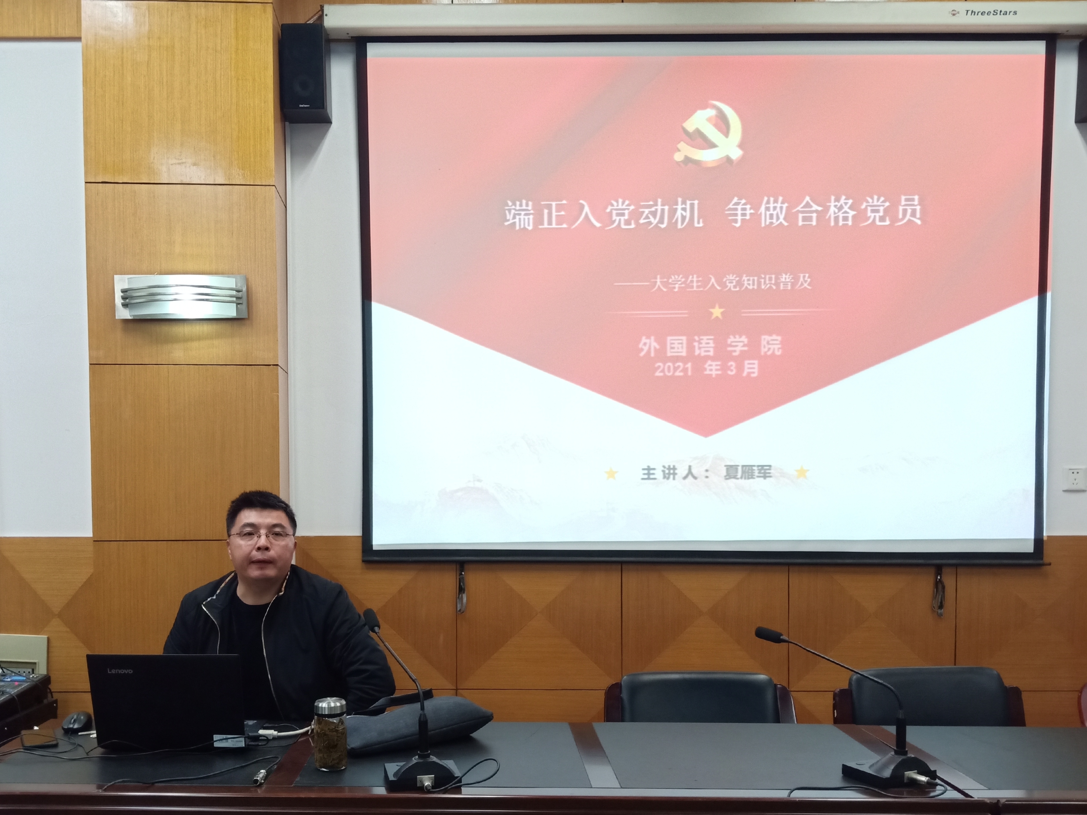 2021年3月30日19:00,云顶国际yd333于品学楼二楼报告厅开展主题为“端正入党动机,争做合格党员”的党团课。公司党委秘书夏雁军为主讲人,各班级入党积极分子参加此次党团课。