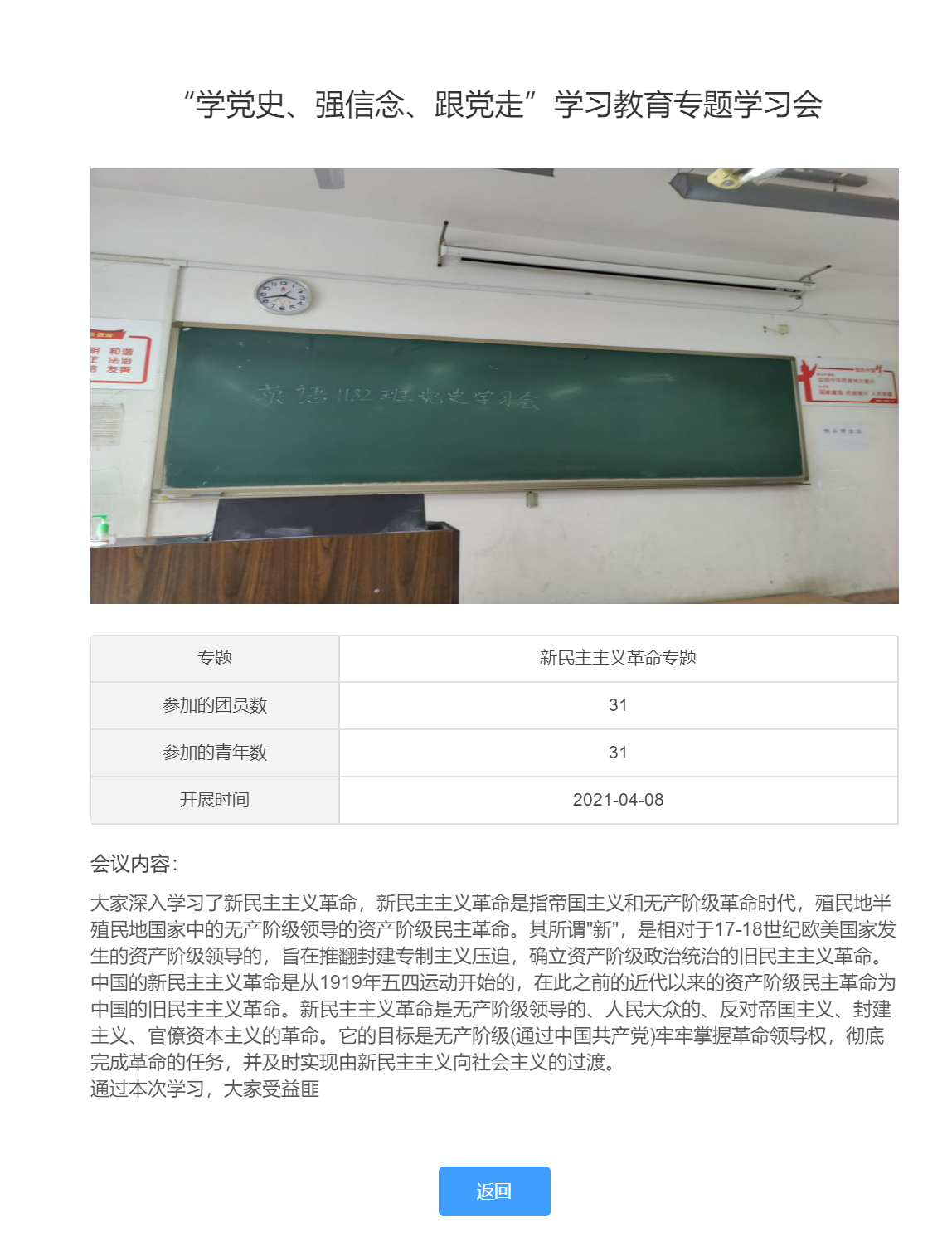 云顶国际yd333各团支部以支部大会为主要形式,围绕新民主主义革命、社会主义革命和建设、改革开放、中国特色社会主义新时代等专题,开展了相关的党史学习会。