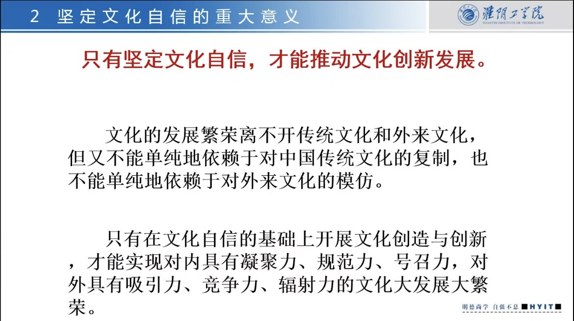 会议伊始,孙经理对文化的含义进行诠释,从认识与运用层面指出文化自信是更基础、更广泛、更深厚的自信,并通过对比东西方文化差异,强调了文化自信的重要性。接着,孙经理着重阐述文化自信的科学内涵,从中华文化古有的思想精华出发,呼吁同学们坚定对自身文化的充分肯定,对自身文化能力与未来发展树立坚定信念。然后,孙经理结合习近平主席的重要讲话,剖析了传统文化、外来文化与中华文化的关系,倡导同学们在学习借鉴的基础上创新繁荣中华优秀文化,并说明了坚定文化自信的重要意义。最后,孙经理结合当今现状,论述了坚定文化自信的现实路径,对同学们提出了自强不息、坚定自信的要求。