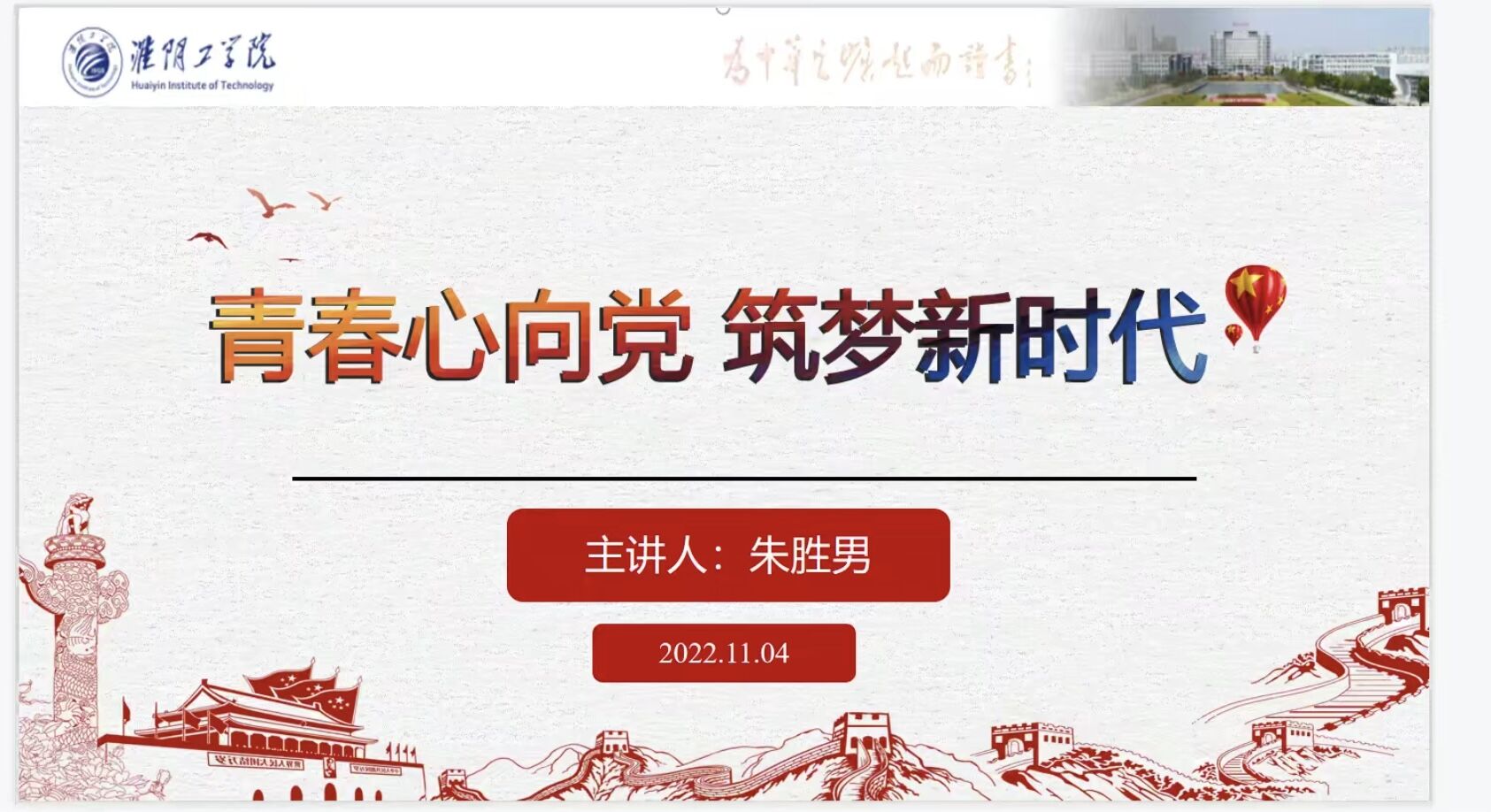 11月4日晚上,云顶国际yd333于线上开展主题为“青春心向党 筑梦新时代”的青马工程培训,云顶国际yd333团委副书记朱胜男担任主讲人,各年级优秀团员参加本次课程。