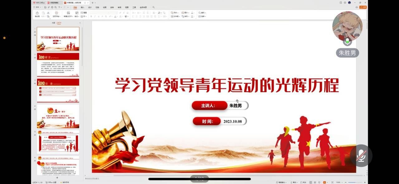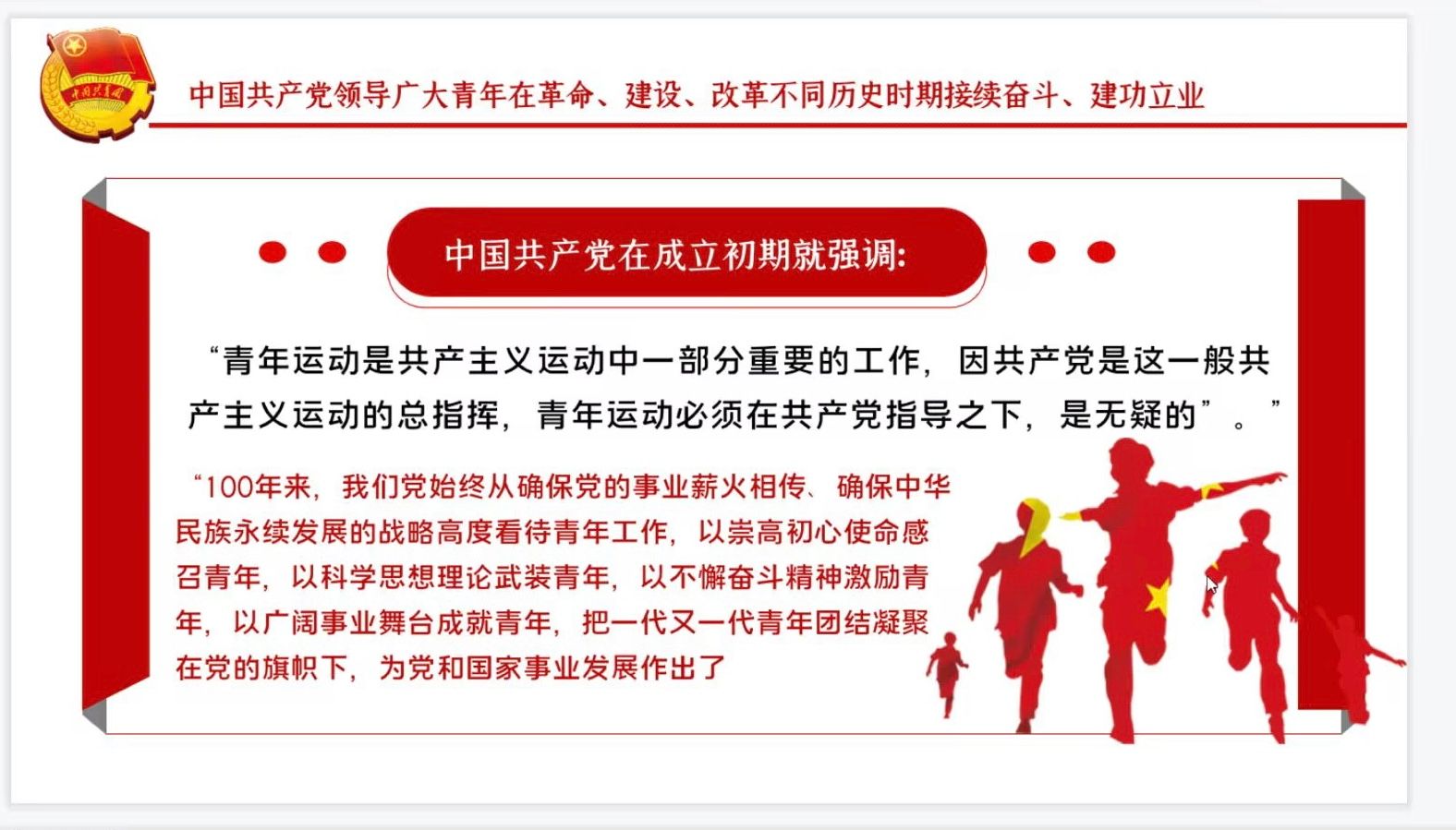10月8日晚,云顶国际yd333于腾讯会议上开展主题为“学习党领导青年运动的光辉历程”的青马工程培训。云顶国际yd333团委副书记朱胜男担任主讲人,各年级优秀团员参加本次课程。