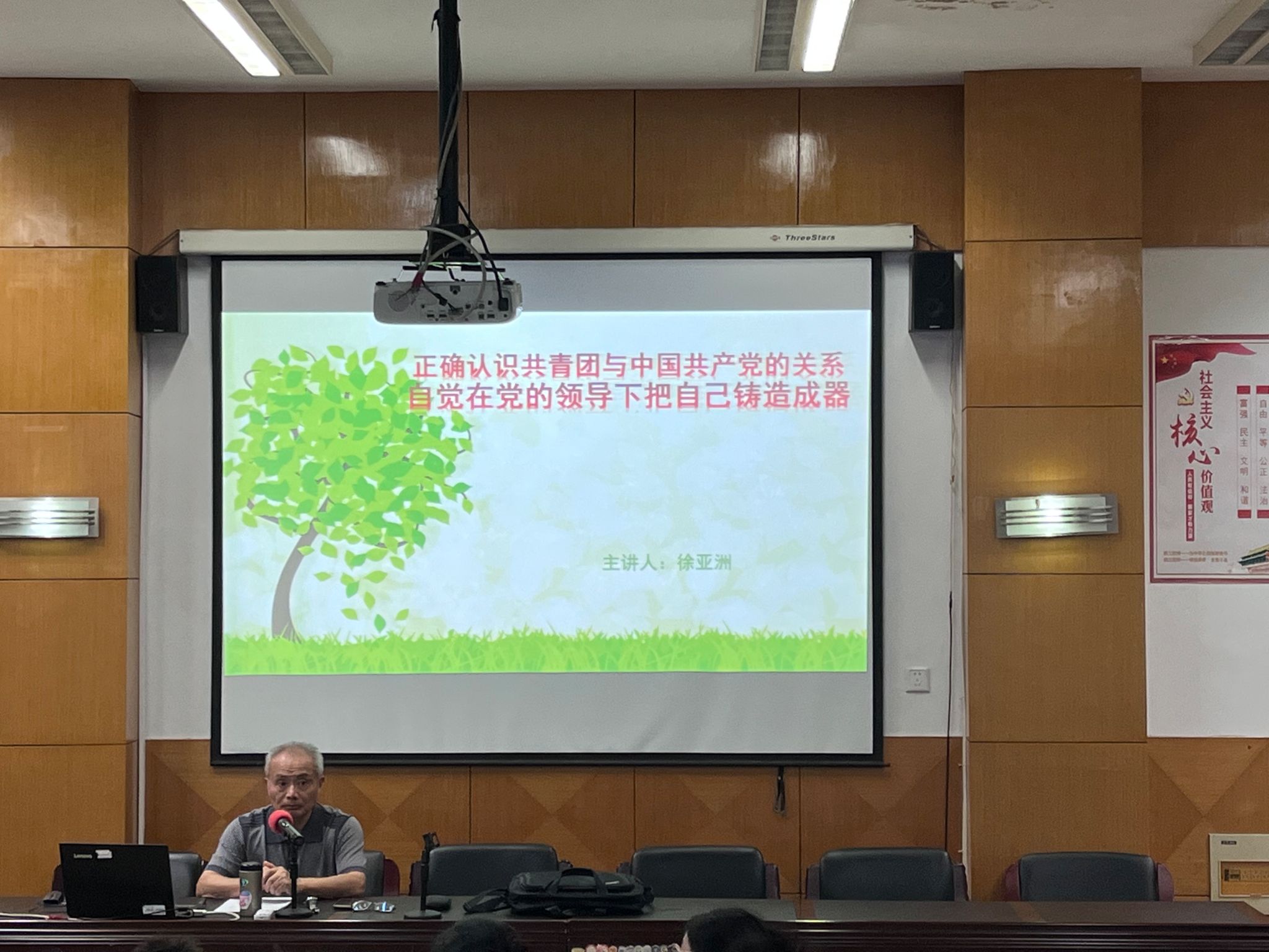 徐亚洲围绕共青团是中国共产党领导下的群团组织、不断强化接受党的领导的观念和努力把自己铸造成器这三个主题,对团员进行党史团史、团员的权利与义务和团的纪律教育。并对团员们能正确认识共青团与中国共产党的关系,自觉在党的领导下把自己铸造成器提出希望。