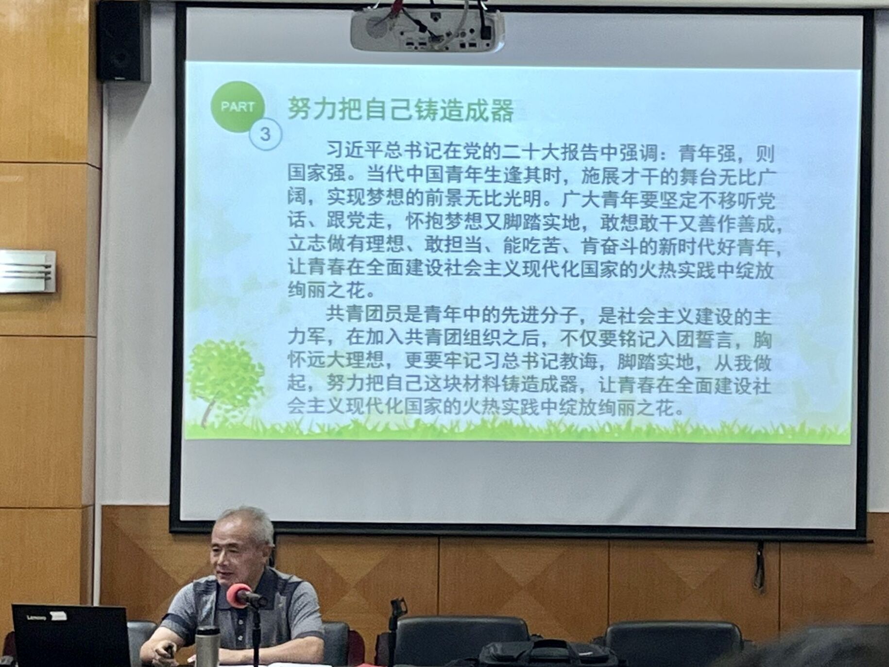 为了提高团员思想理论水平和政治素质,2023年10月12日晚7点,云顶国际yd333于品学楼2210开展青马工程培训。本次培训主题为“正确认识共青团员与中国共产党的关系,自觉在党的领导下把自己铸造成器”,由校关工委成员徐亚洲老师担任主讲人,外院各年级优秀团员参与。