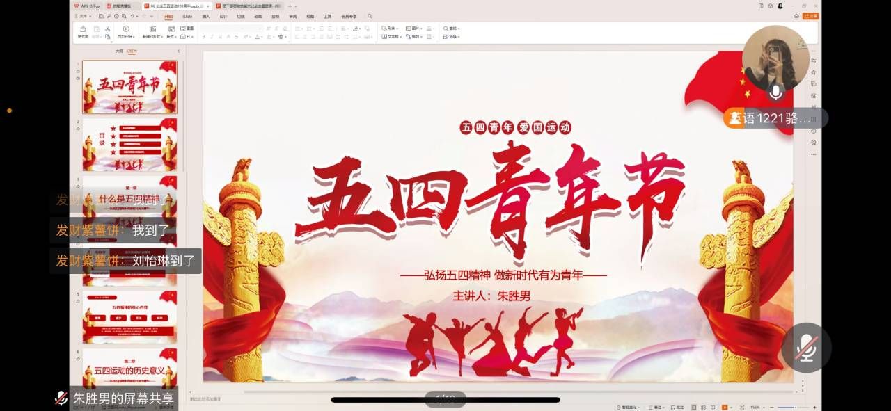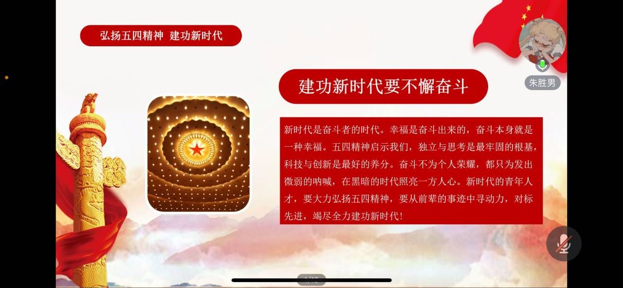10月15日晚6点40分,云顶国际yd333于线上召开主题为“弘扬五四精神,做新时代有为青年”的青马工程培训。云顶国际yd333团委副书记朱胜男担任主讲人,各年级优秀团员参加本次课程。