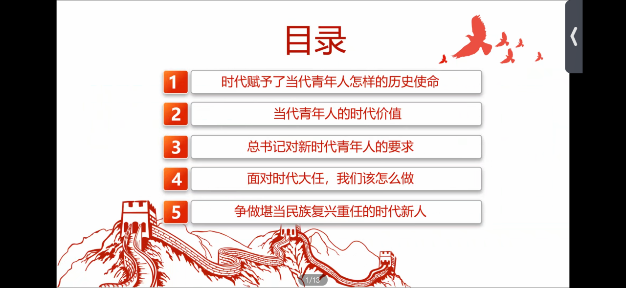 此次团课让同学们明白了青年应坚定理想信念,勇担历史责任,发扬斗争精神,锻造斗争本领,积极作为,将个人梦想融入到中华民族伟大复兴的中国梦之中,用实际行动去践行这份责任。