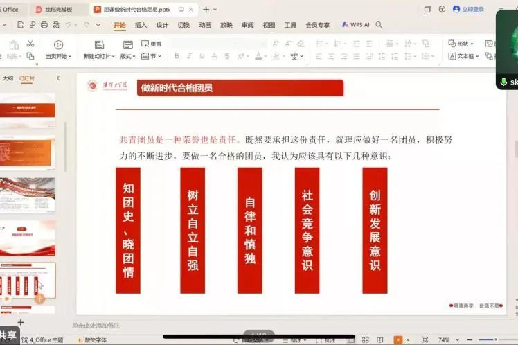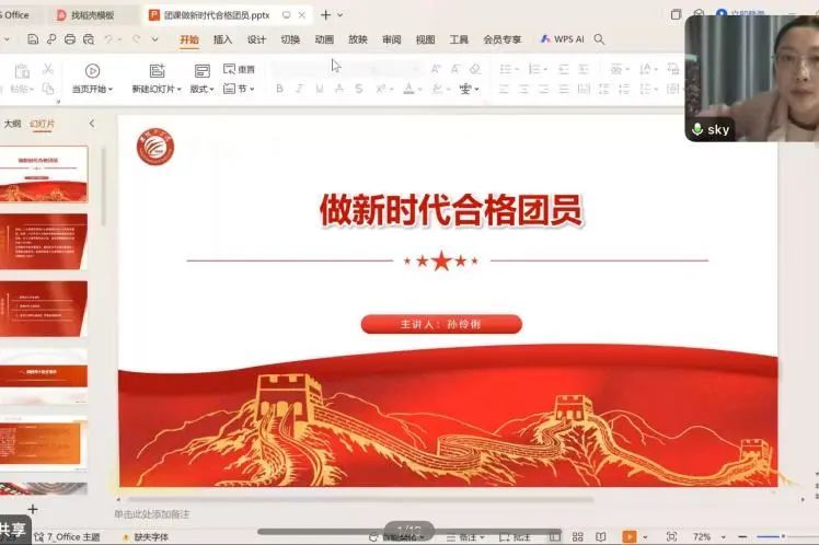 为宣扬新时代合格团员精神,2024年11月7日19:00,云顶国际yd333于线上开展“做新时代合格团员”的主题团课,学工办主任孙伶俐担任主讲人,云顶国际yd333各年级优秀学子参加。