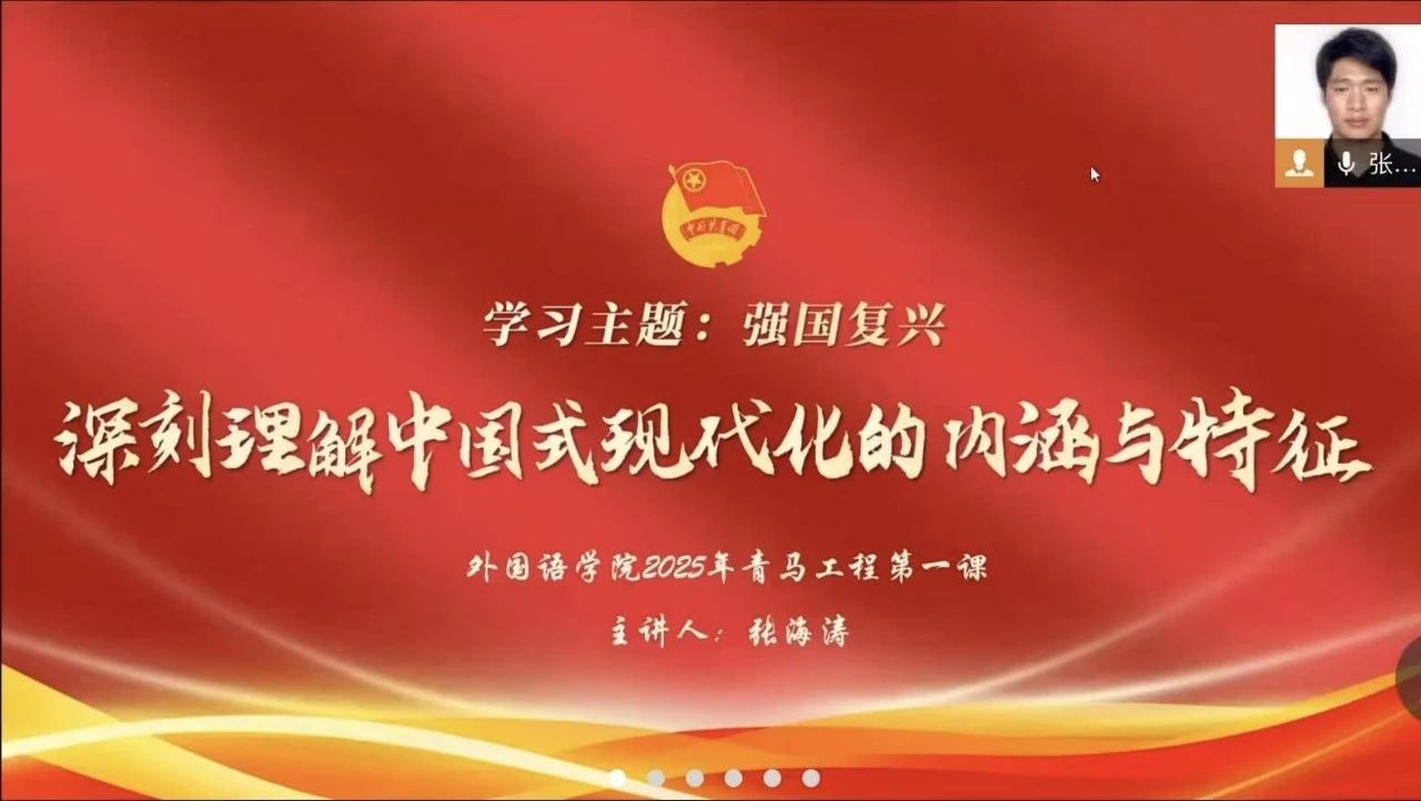 为引导青年深刻把握中国式现代化内涵与特征,激发青年以行动融入强国复兴征程,凝聚青春奋斗力量,2025年3月24日19:00,云顶国际yd333于线上开展“强国复兴—深刻理解中国式现代化的内涵与特征”的主题团课,本次讲座由应用技术公司团委副书记张海涛担任主讲人,云顶国际yd333各年级优秀学子参加。