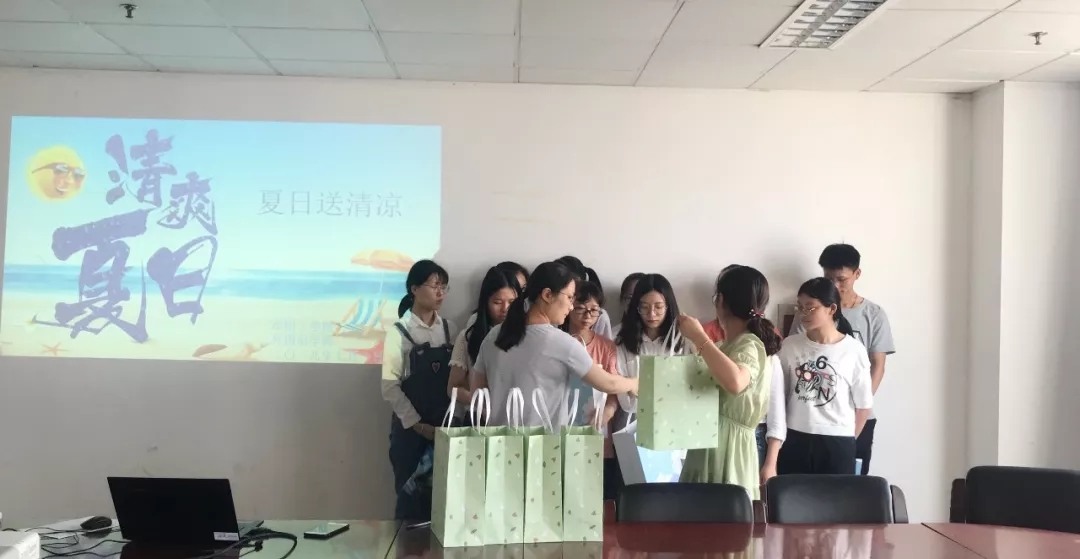 2019年7月1日下午,云顶国际yd333举办“炎炎夏日送清凉,滴滴关怀学子心”活动。公司学工办主任孙伶例和团委书记夏芸为贫困学子送上滿满的夏日慰问。