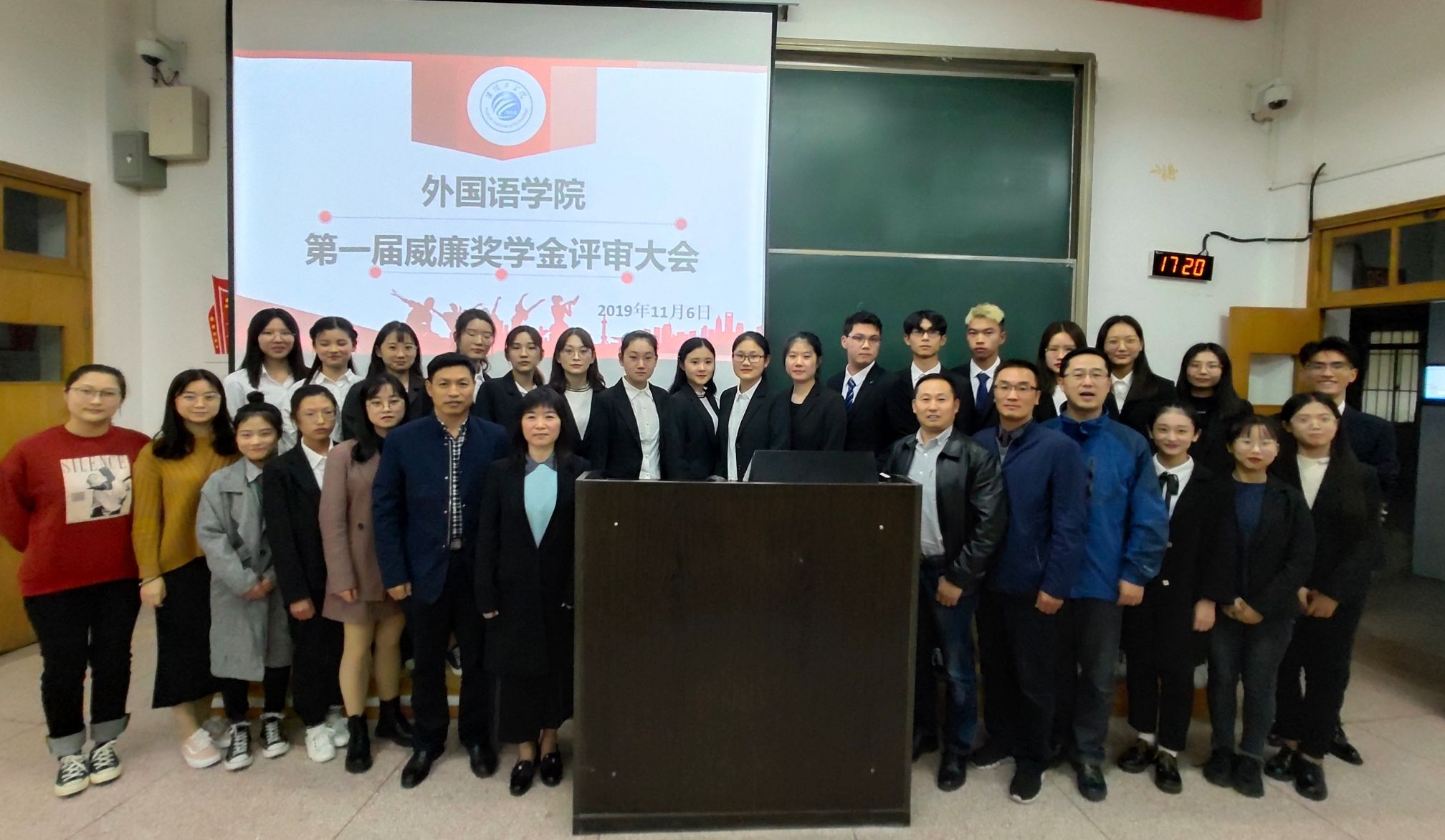2019年11月6日15:30云顶国际yd333于AJ305开展第一届“威廉奖学金”评审大会。此次大会主要为外院16、17、18级优秀学子申请“威廉奖学金”的答辩与评定过程。由公司党委书记何其中、经理左进、党委副书记于文天、副经理孙建光、副经理胡庭树、学工办主任孙伶俐、团委书记夏芸担任评审,外院18级全体同学到场参加。