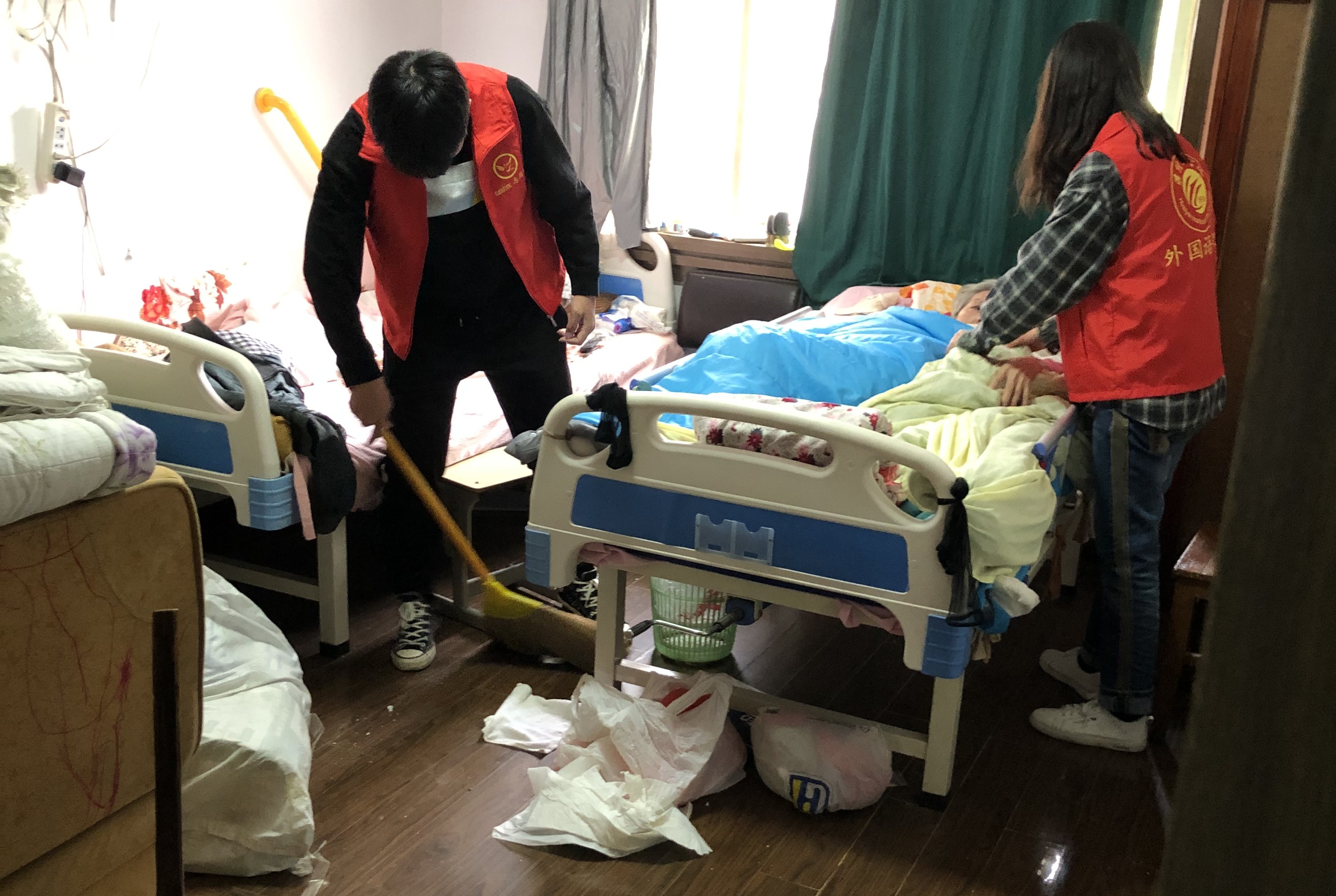 来到社区后,在阿姨的带领下,志愿者们有的提着大大的垃圾袋利用夹子捡拾垃圾,还有的拿着笤帚与簸箕仔细打扫楼梯和过道,不畏垃圾多与少,也不惧尘土满天飞。