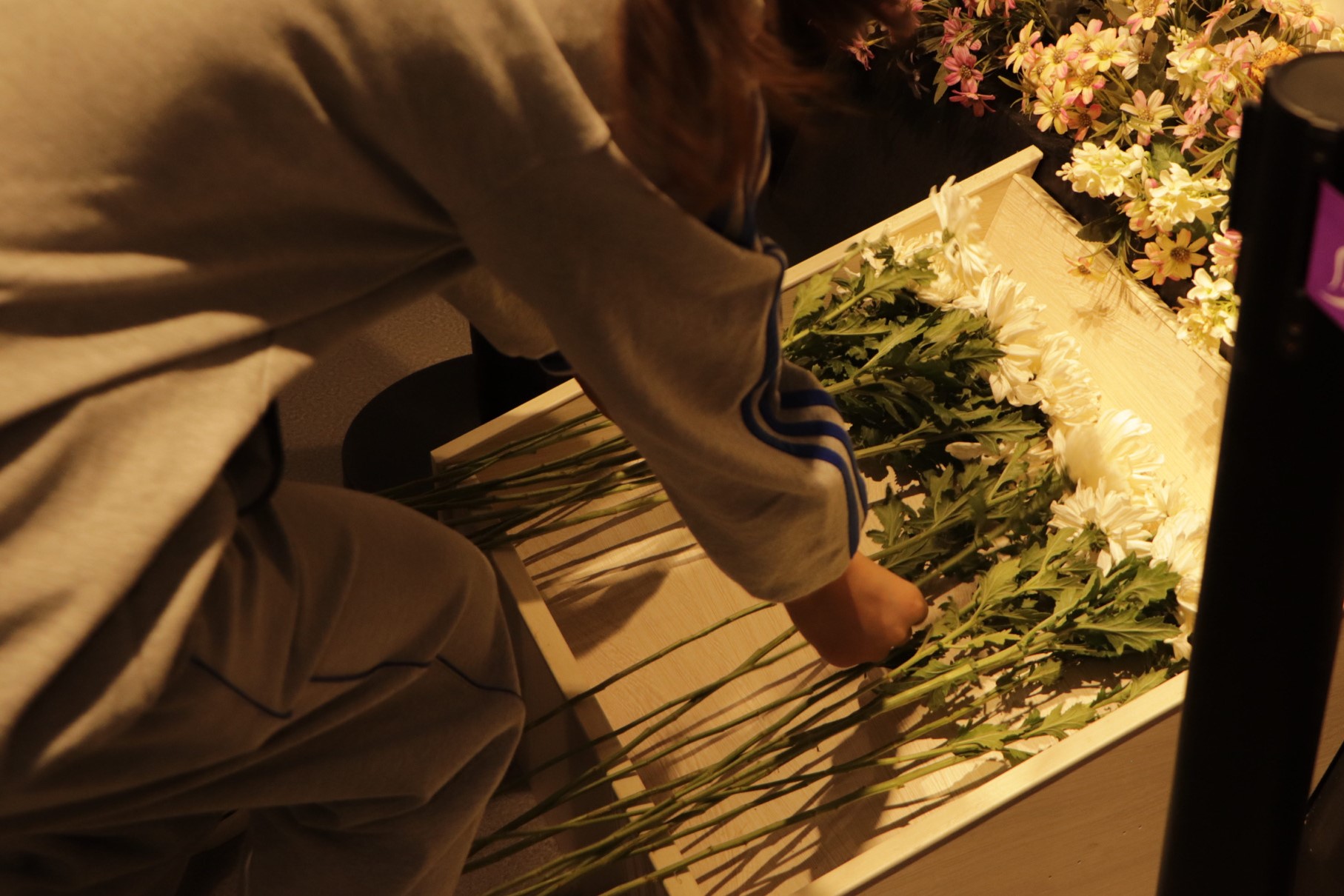 活动开始前,所有人左手手持菊花,在馆前默哀五分钟。然后跟随着解说员的脚步来到纪念馆入口,全体人员来到张纯如的雕像前并为其献花。