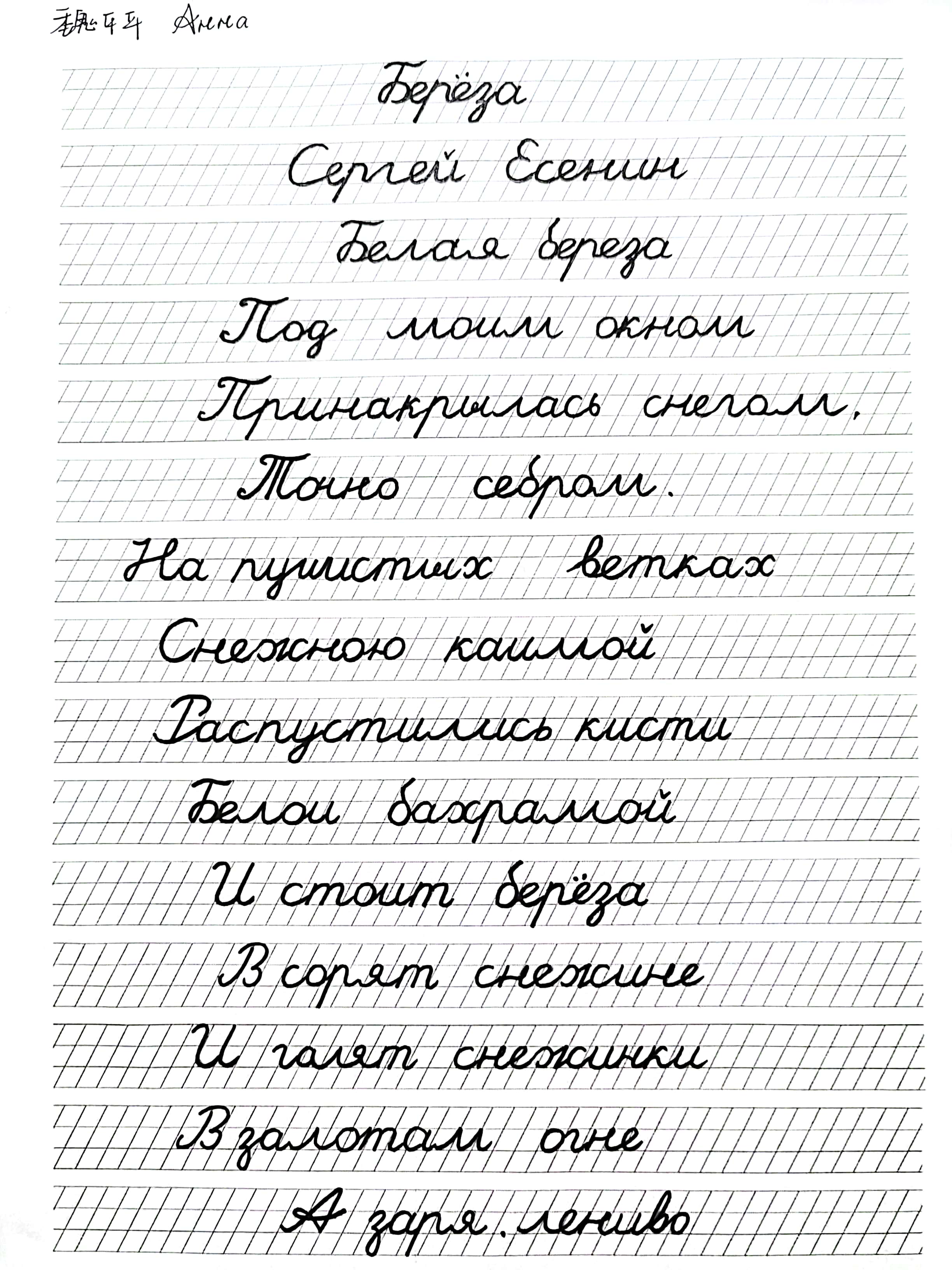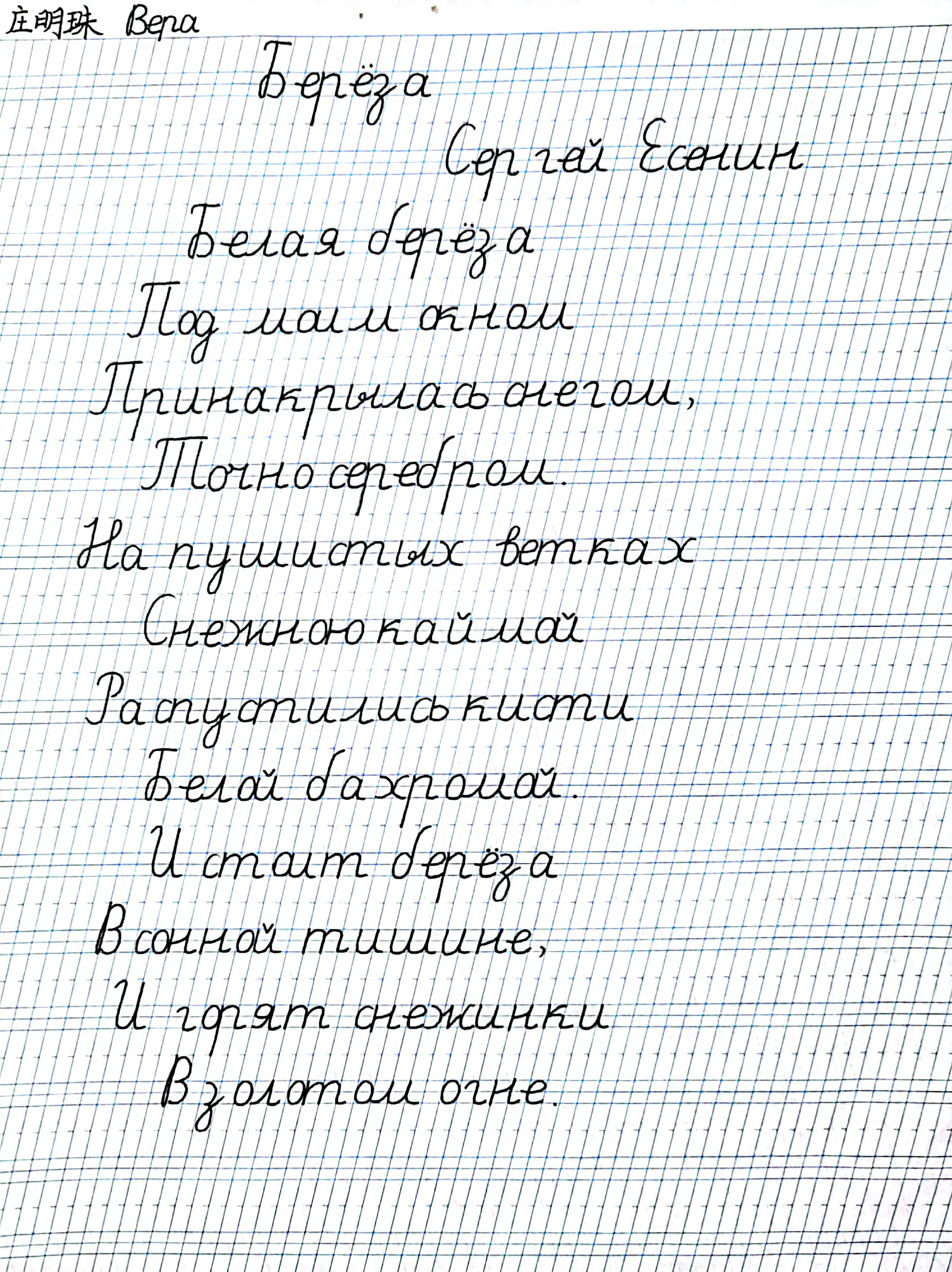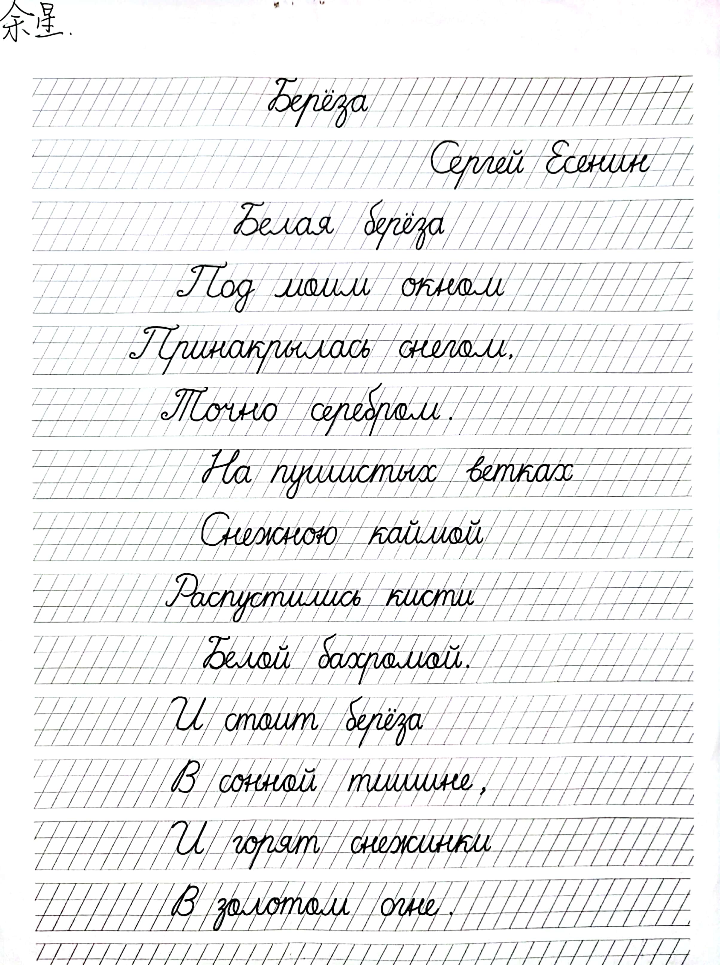 比赛中,同学们伏案疾书,认真仔细。一个个俄语字母在同学们笔下或严谨规整,或活泼灵动,每个单词在同学们笔下展现出不一样的魅力。同学们尽情挥毫泼墨,用作品展示了俄语字母的独特风格和俄语书写体的魅力。从他们的作品中,不仅可以看出同学们对俄语的浓厚兴趣,也让其他专业同学能够一睹俄罗斯秋天的美景。作品不仅承载着同学们对俄语学习的极大乐趣和期望,同时也丰富了他们对俄罗斯文化的认知维度。