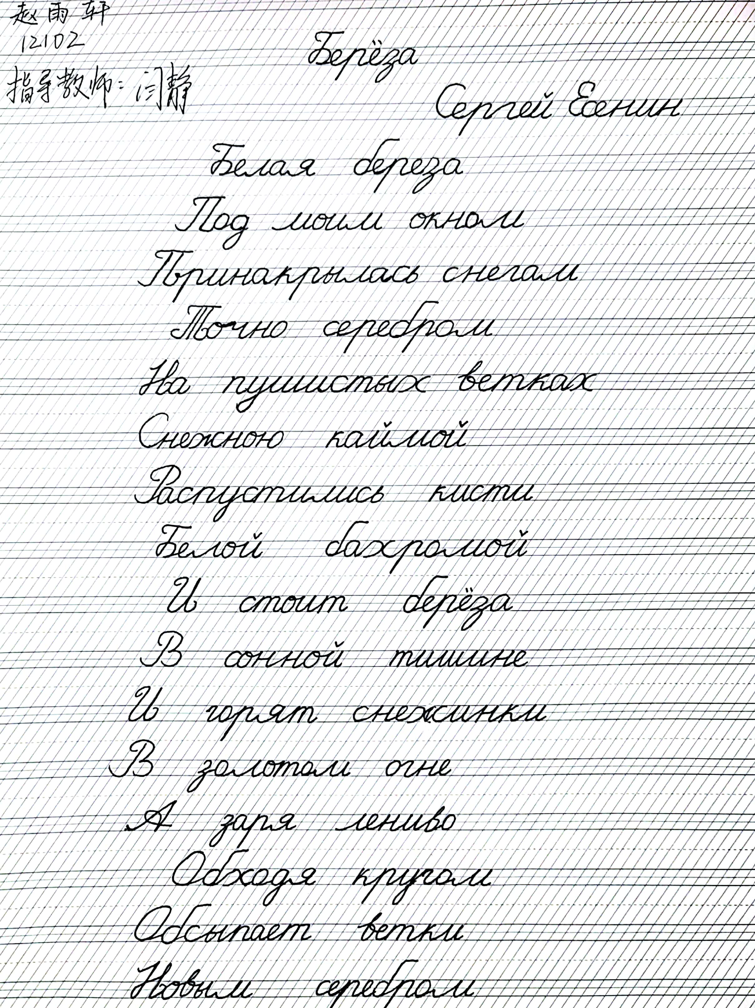 本次活动不仅陶冶了同学们的情操,丰富了同学们的课余生活,增进了师生间交流,同时也激发了同学们对俄语书法、绘画、文学的热情,培养了良好的俄语书写习惯,为进一步的俄语学习打下扎实基础。