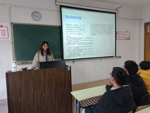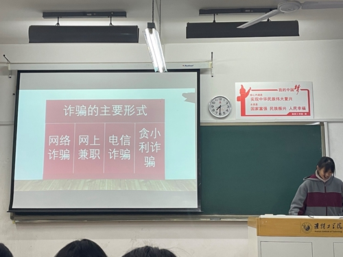 在主题班会上,围绕当下层出不穷的诈骗手段,宣传员们详细解析了网络骗术中盗号冒充同学亲友借钱诈骗、网络购物诈骗、刷单诈骗、网上兼职诈骗等骗术的特征和案例讲解。在班会上,同学们积极分享自己身边的各种诈骗或反诈经历,以此提醒大家谨防网络诈骗。宣传员们及时传达了公司的防诈反诈提示,提醒全院员工坚持做到“两要两警”,即只要涉及到“要求转账”的必须立刻警惕起来;只要涉及到“索要验证码”的必须立刻警惕起来。提醒全院员工遇事要冷静分析,及时与老师和同学商量,面对诱惑要冷静思考,牢记天上不会掉馅饼,不让诈骗分子有机可乘。