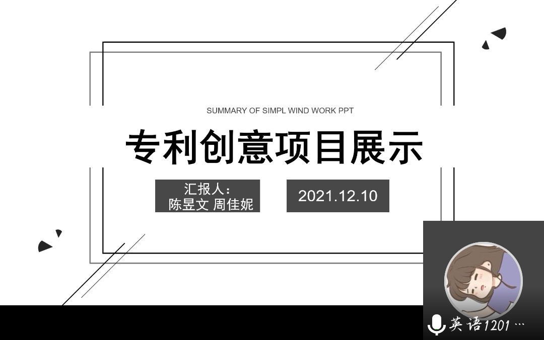 首先,学风建设部部长柴泰乾介绍本次答辩会流程,在确认参赛选手在场后,此次答辩会正式拉开序幕。参赛选手以线上PPT演讲形式从灵感来源,设计方案,产品介绍等方面介绍各自的发明创意。评委李锋老师针对创意产品的实用性,可行性进行全面的分析,提出许多建设性意见,助力同学们的创意发明的专利申请。然后,参赛选手们依次展示了将生活灵感转换成的具有创新性和实用性的创意专利。活动最后,李老师一一点评了参赛作品的优缺点,对其改进方法进行了细心的指导。