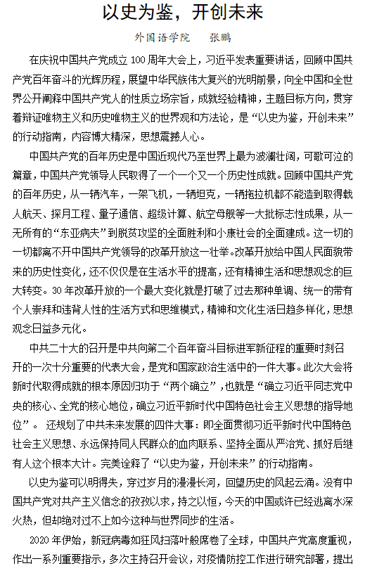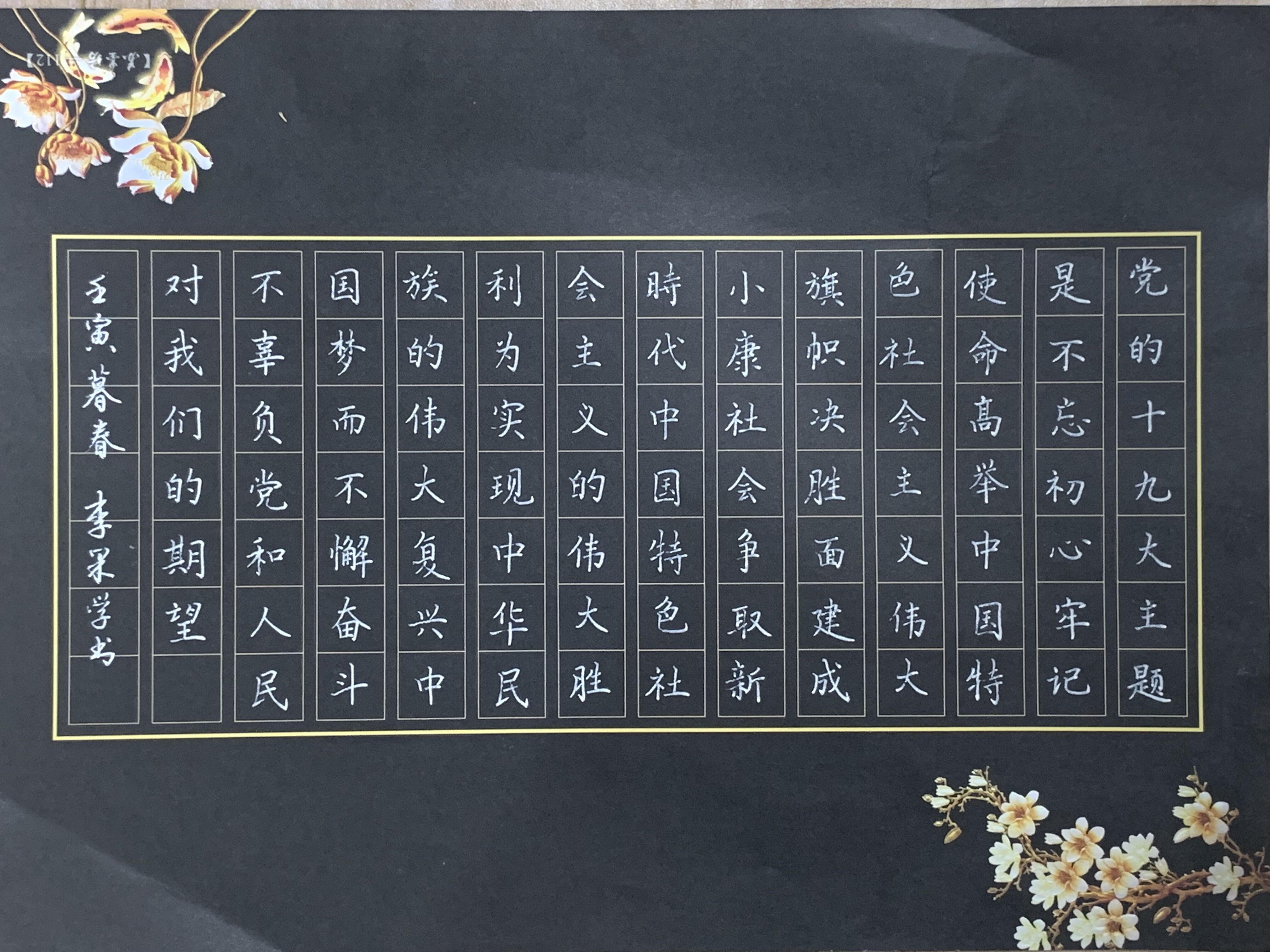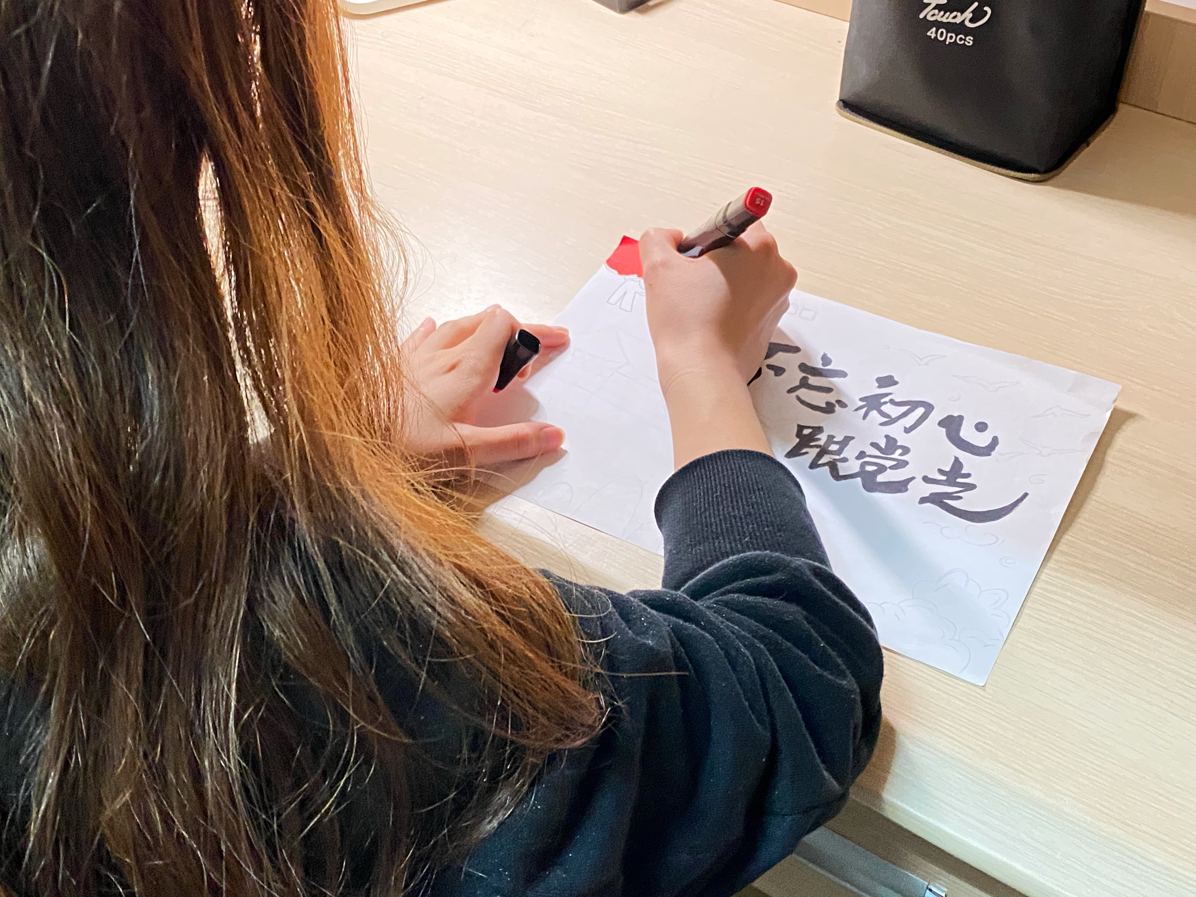 同学们以端正的态度,硬实的书法功底,行云流水的字体和笔锋刻画了党在面临巨大困难时风雨无阻,勇往前行的革命精神,字里行间无不体现了在历史长河中,中国共产党为国为民,挥洒热血的伟大精神。