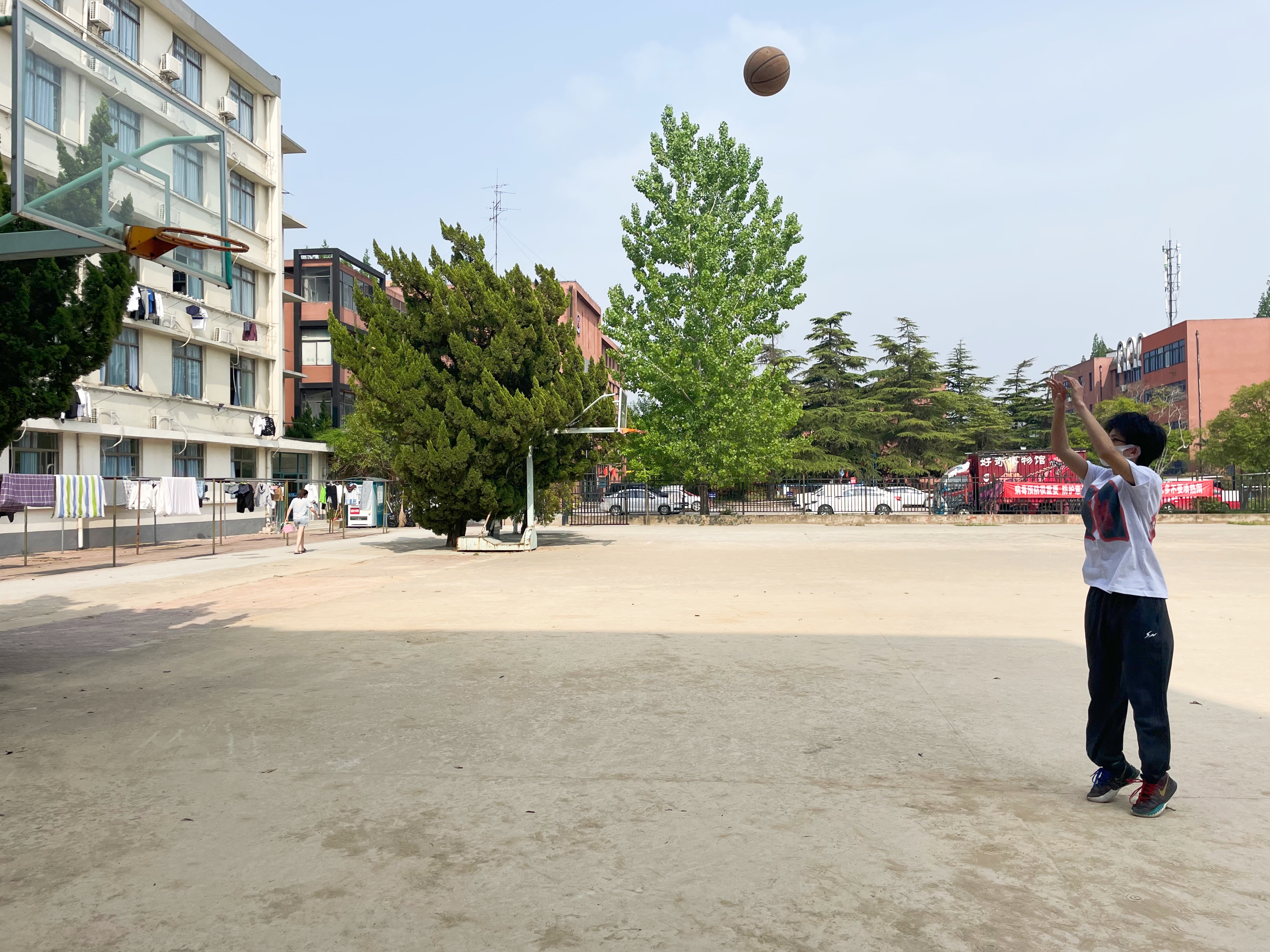 天气的炎热并没有阻挡参赛同学的积极性。比赛正式拉开帷幕,参赛选手们全神贯注地投起球来,旁边观战的同学们也不敢怠慢,不断地为参赛的同学呐喊助威。选手们膝盖略微弯曲,身体下蹲,凝视着篮筐,双腿猛然发力,高高弹起,手臂将球向上推去,手腕轻轻一抖,将球向篮筐送去。裁判员们认真负责,激情燃烧在运动的篮球场上,汗水挥洒在赛场的前进途中。活力四溢、灵活机动,青春涌动,友谊赛场绽放美好青春色彩。热血篮球,“疫”起加油。