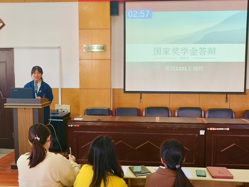 10月12日下午,云顶国际yd333于外院楼报告厅举行国家奖学金评审大会。党委副书记、副经理祖维,学工办主任孙伶俐,辅导员朱胜男出席此次大会并进行现场评审。2022级部分员工代表参与现场观摩学习。评审大会由员工杨淼主持。