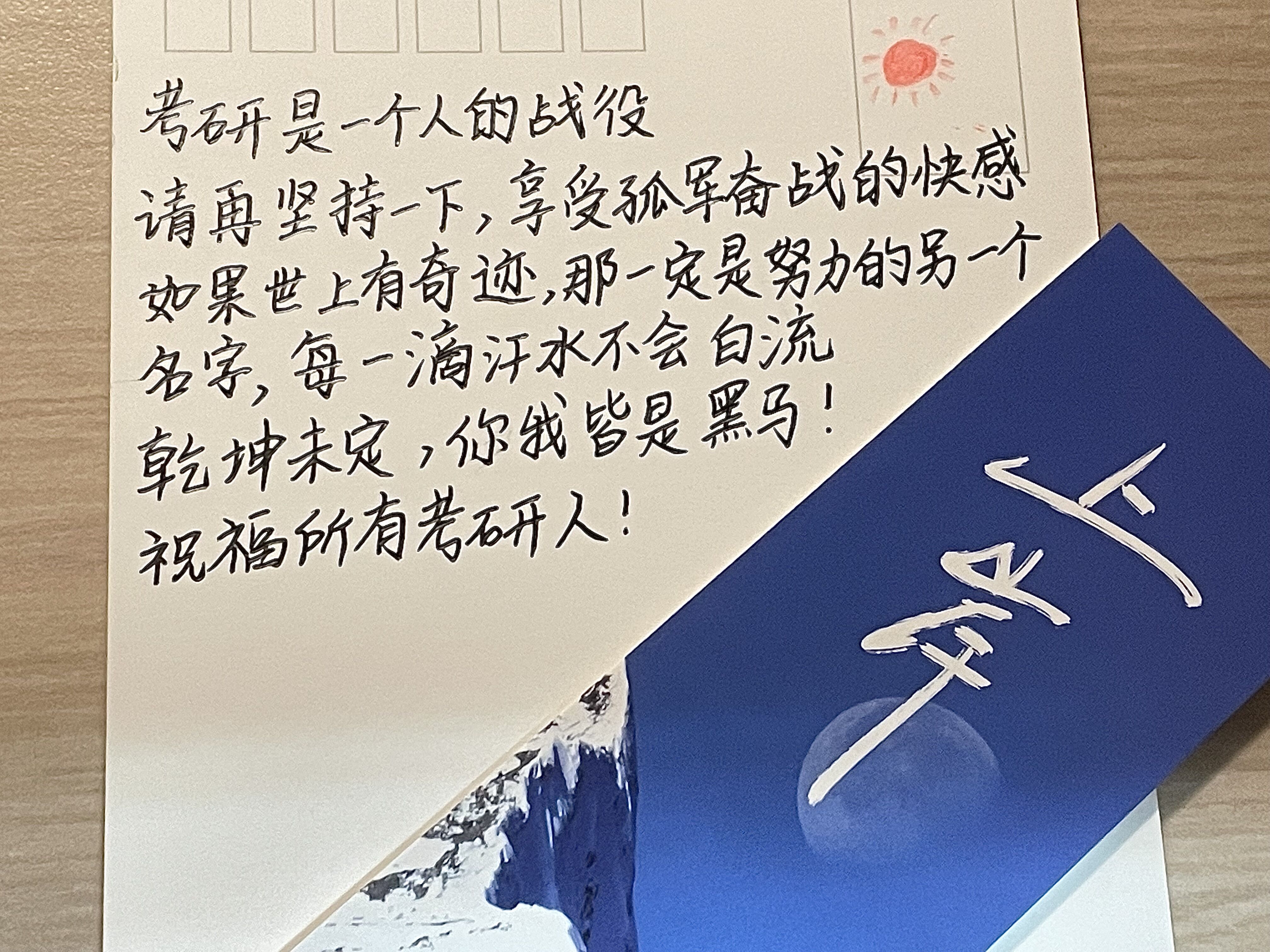 “当你在追光,你与光同行。”复习之余,举头环顾,一份份来自学弟学妹的关心,一张张祝福的贺卡,令考研学子们深深感受到了来自公司的爱与温暖。