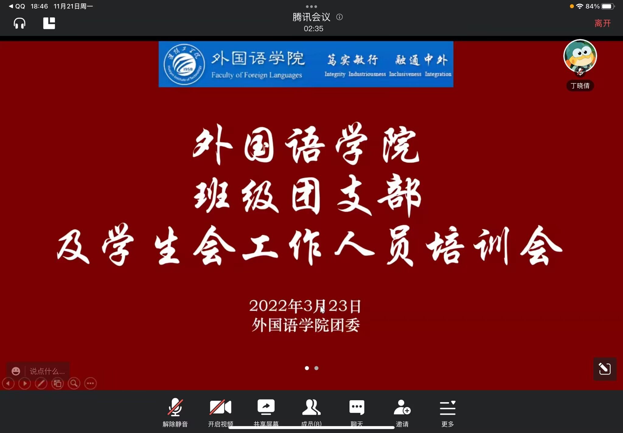 2022年3月23日,云顶国际yd333于线上组织对班级团支部团支书、院系员工会工作人员进行培训。云顶国际yd333各班级团支部团支书、院系员工会工作人员参加培训,团委书记夏芸主持会议。