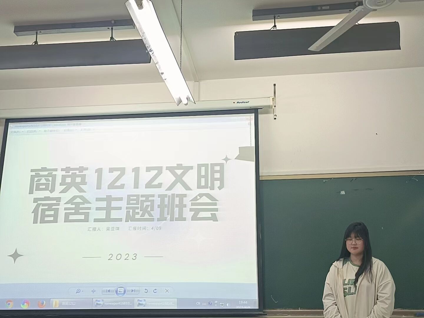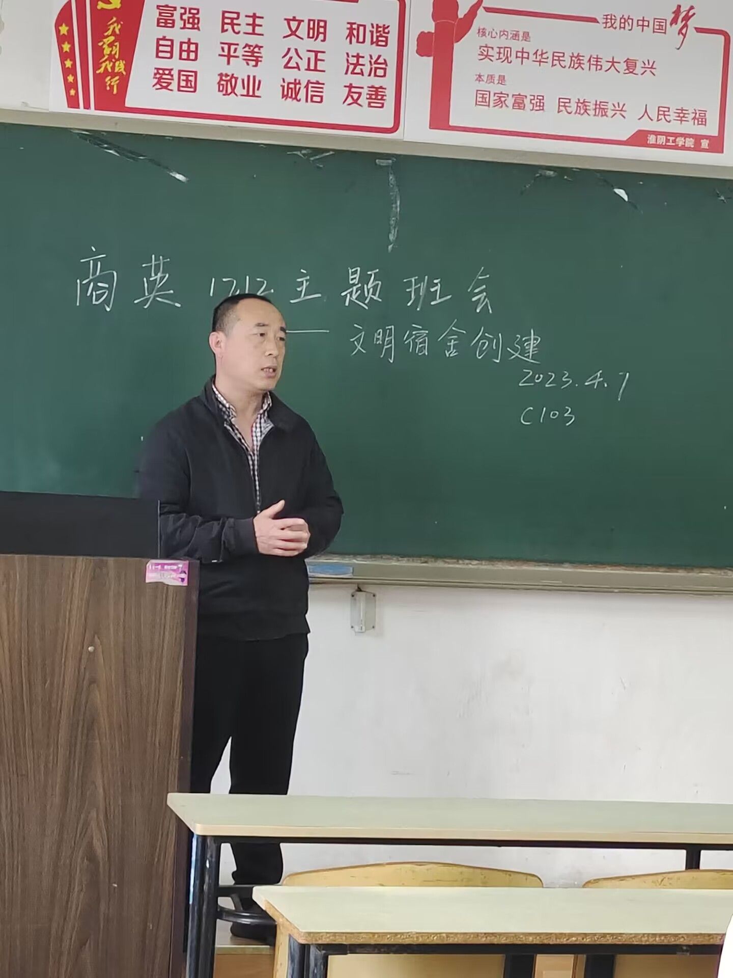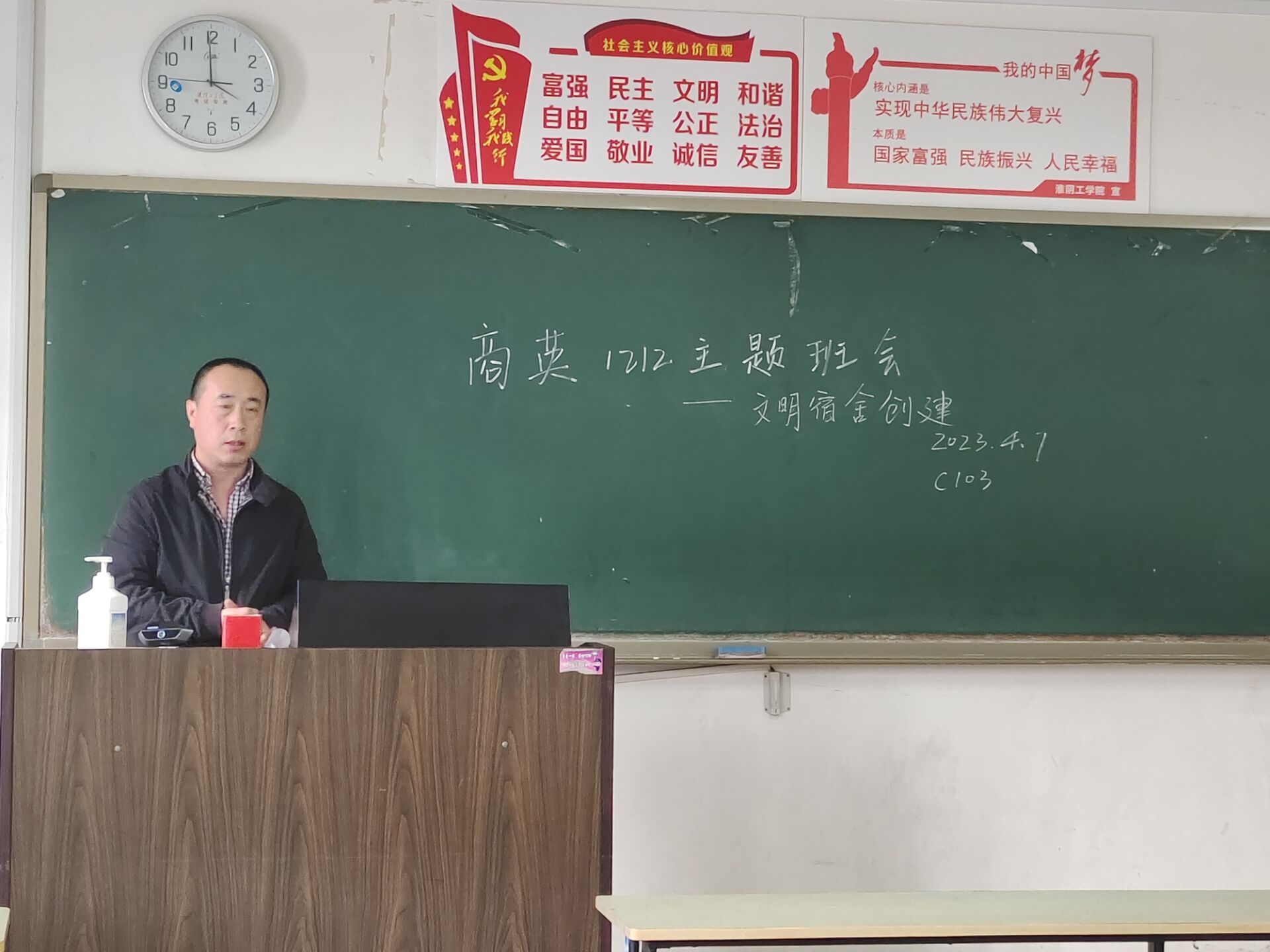 为营造安全文明和谐的宿舍环境,培养员工良好的宿舍行为习惯,商英1212班于4月7日下午16点在c楼103教室召开了关于“文明宿舍创建”的主题班会。班会由班主任李辉老师主持,商英1212班全体员工参加本次会议,班主任李辉老师为主讲人,班长刘顺、卫生委员吴亚琪为副演讲人。