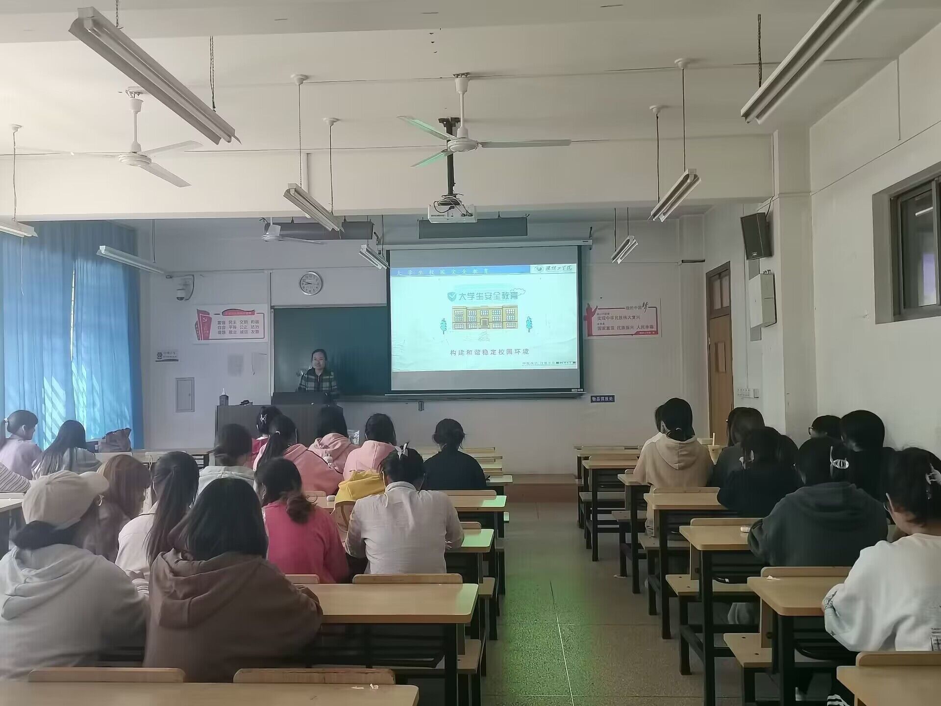 首先,常霄老师从政治安全、人身安全、财产安全、消防安全、校园公共安全五个方面提醒同学们在五一假期中做好防盗、防骗,预防各种安全事故和电信诈骗等,并带领同学们了解安全问题防范预警机制,切实提高安全意识和安全防范能力。与此同时,常霄老师提醒大家在假期期间要合理合法理在网络发表观点,自觉维护老员工的良好形象。在班会后,常霄老师亲切地与每位同学进行谈心交流,进一步地了解每一位的真实情况。