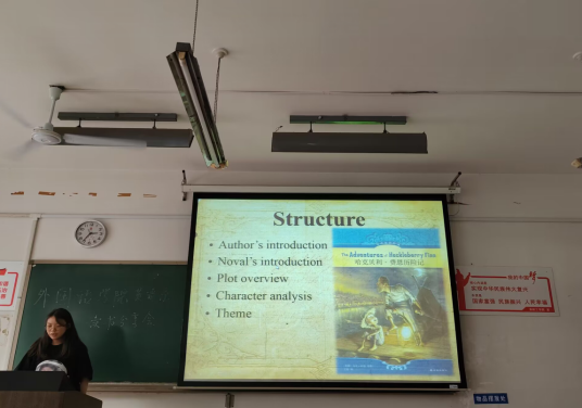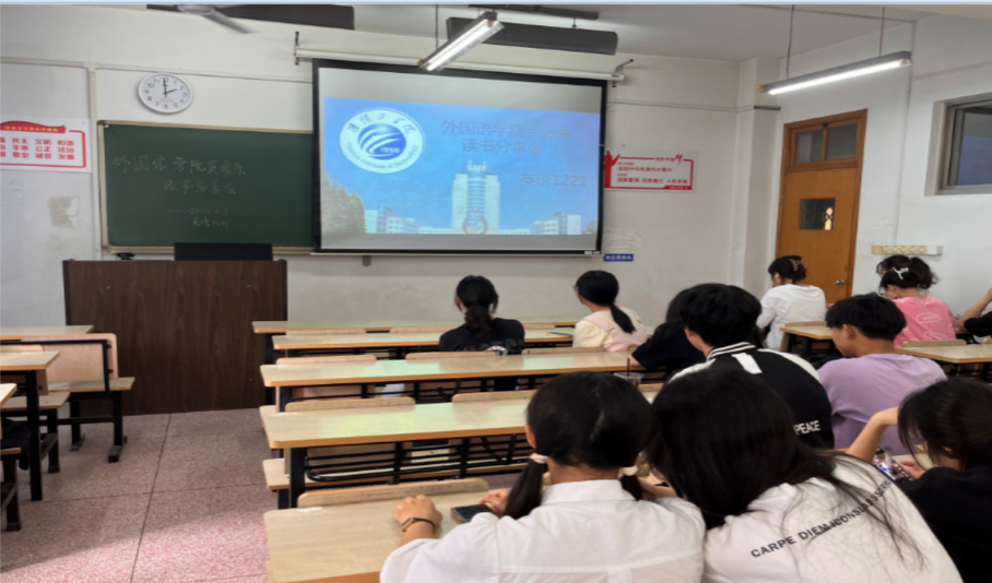 读书分享会分两个阶段进行。首先英语系一年级分班级进行,由每位同学自主汇报近期读书活动的内容及展示方式:合作表演式-将所读情节生动展示给班级同学,主题汇报式-将所读经典名著的作者、内容及个人读书感受与班级同学分享。班级汇报展示钟,每位分享者结合作品内容,以生动的语言、饱满的精神、真挚的情感带领大家领略书籍的魅力,传递阅读的力量。各班级同学从内容、语言、展示方式等多方面进行评选,班级同学推选三到四位优秀同学分享案例,开展年级读书活动分享。第二阶段,向年级同学推送各班级推送的优秀读书分享案例,邀请同学、班主任、任课老师等给予评判打分,评选读书分享会“最佳分享者”。
