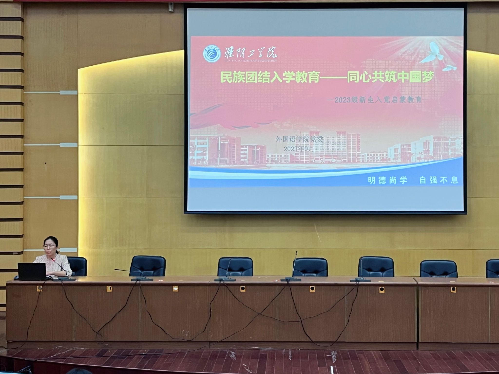 9月15日晚上七点,云顶国际yd333于尚学楼报告厅举行“同心共筑中国梦”民族团结入学教育讲座。公司党委副书记、副经理祖维担任主讲人,2023级全体新生参与会议。