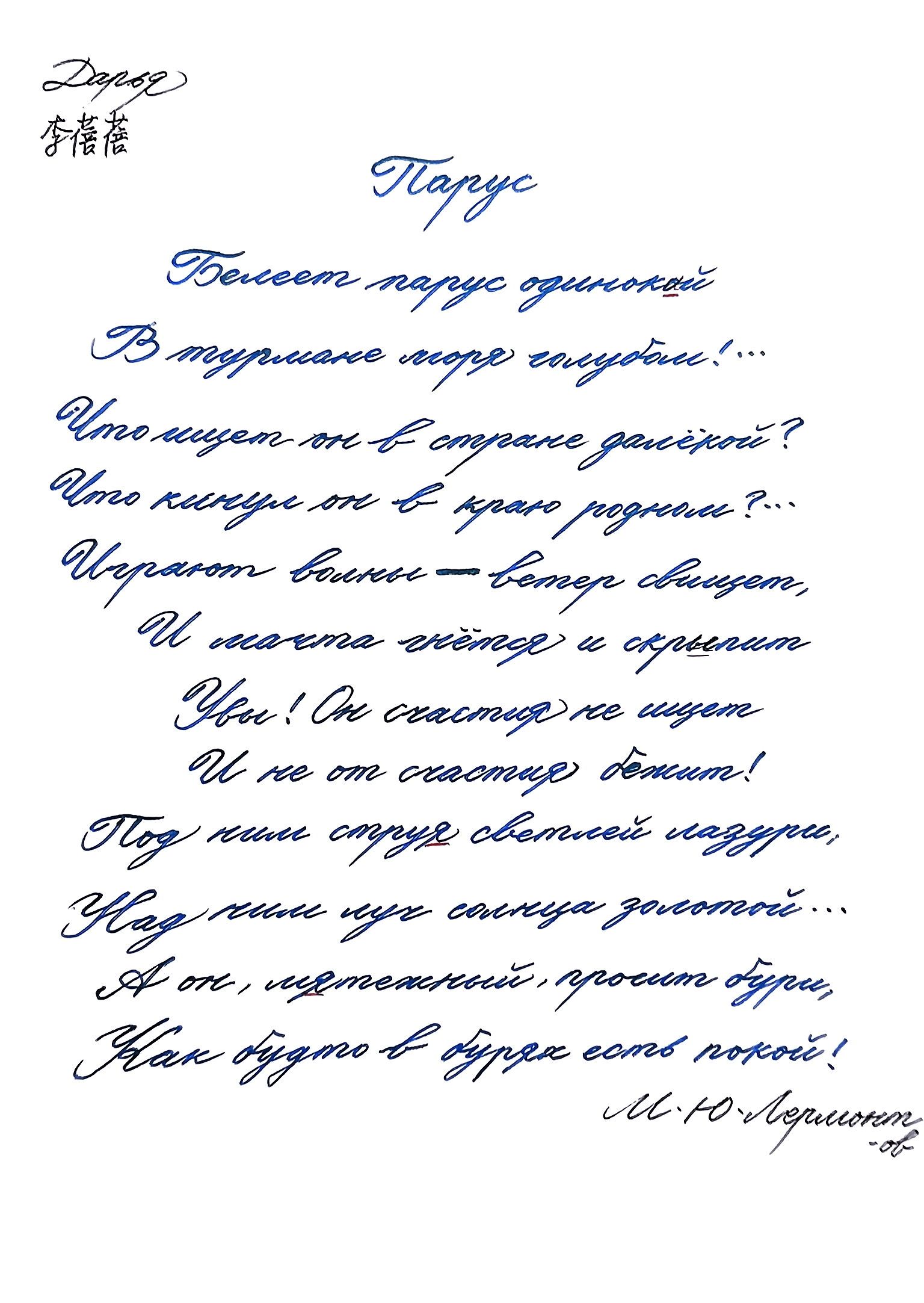 近日,云顶国际yd333组织的“提笔挥毫,感悟俄语之美”第三届俄语书法大赛已接近尾声。全校俄语学习者及俄语爱好者积极参加了此次活动。获奖作品卷面工整,书写美观,充分展现了同学们优秀的书法才能。本次比赛作品经评审后,现将获奖名单公布如下: