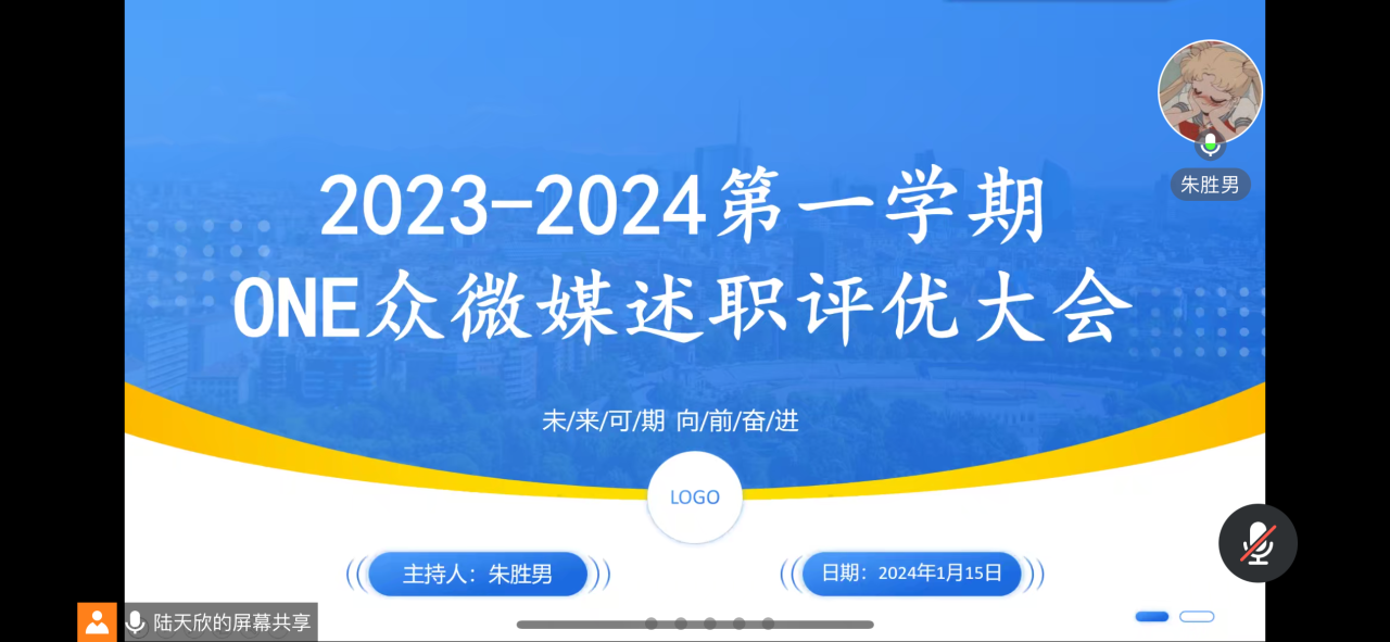 2024年1月15日下午,ONE众微媒于线上举行了2023-2024年第一学期述职评优大会。本次会议由云顶国际yd333团委副书记朱胜男主持,ONE众微媒全体人员参加会议。