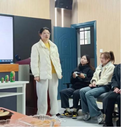 活动伊始,俄语系主任闫静对俄罗斯外教Евгения举办本次活动表示感谢,并对俄语专业员工在学习方面提出了新的要求,同时也肯定了员工们新学期的进步与成长。