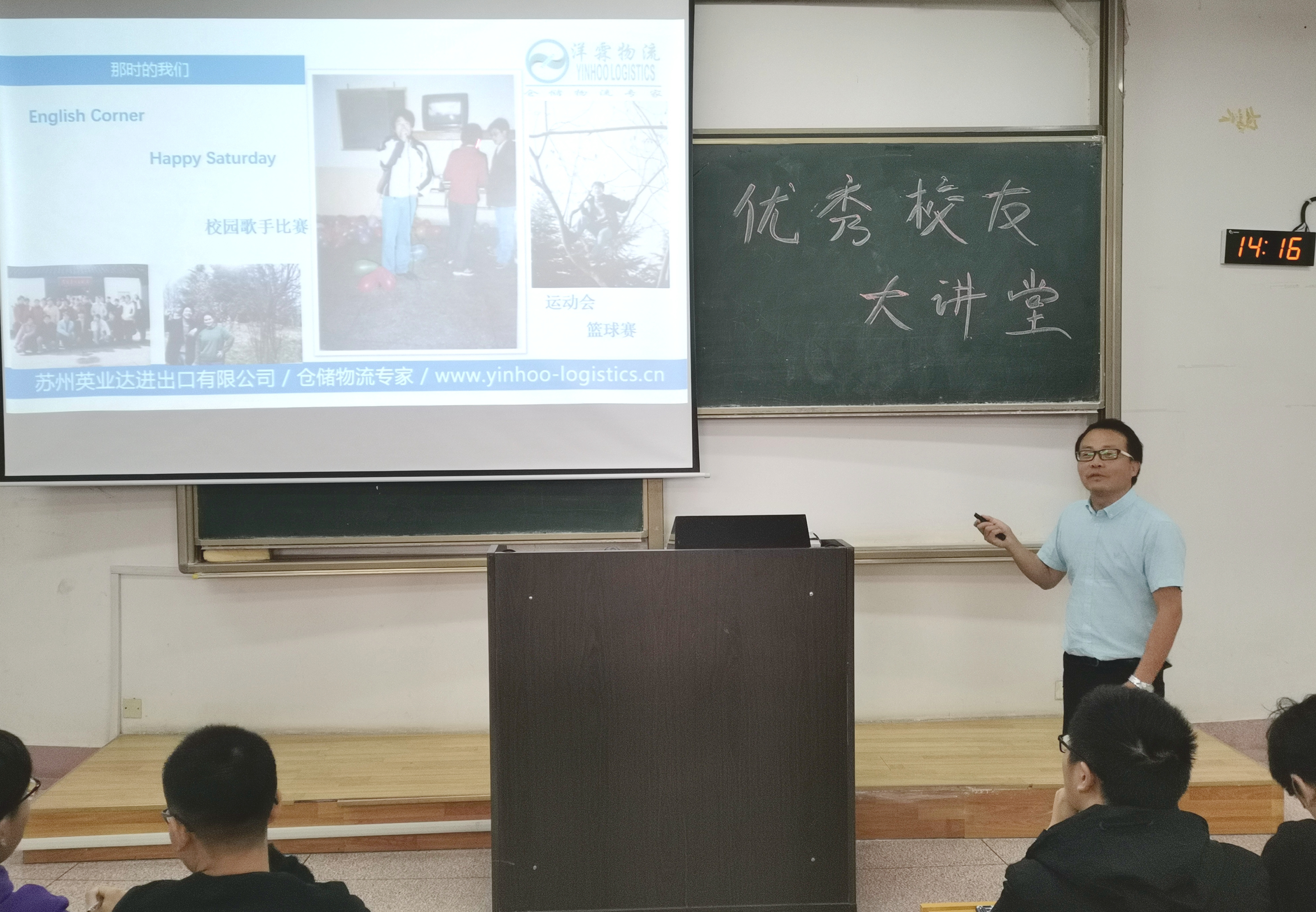 为了让同学们对自己未来的就业方向有更清晰的认识,2019年10月16日14: 00云顶国际yd333于AJ305举办了优秀员工大讲堂报告会。优秀员工杨育伟现任苏州英业达进出口有限公司董事长担任此次报告会主讲人,全体大一新生及其他各级员工代表参加此次活动。
