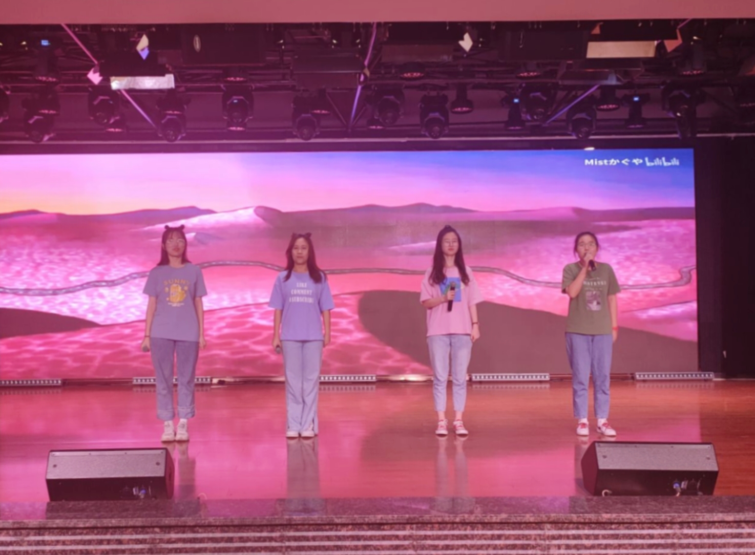 在两位主持人流利的英语口语报幕中,此次英语文化节汇报演出拉开帷幕。此次汇演以比赛的形式带给大家一场视听盛宴,大一进行的是英语歌曲比赛和英语朗读比赛,大二进行的是英语配音比赛,大三进行的是英语戏剧比赛。