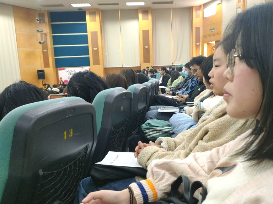 活动伊始,李靖琳女士分享了自己大学四年的经历,其曾在大一学期初次接触并成功考取CATTI,大二学期参加了多项中外交流活动,于大三时通过英语演讲比赛走上翻译之路。接着,李靖琳女士向同学们展示了在蒙特雷的求学之旅和在外交部的日常生活。随后,又和同学们交流了自己的翻译心得:首先要学会自我调整状态;再者,在不断自主学习的同时,要明白翻译不只是翻译。